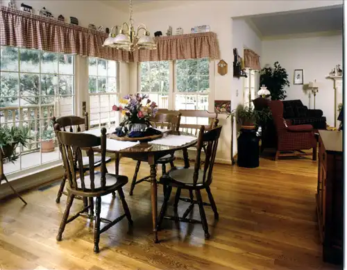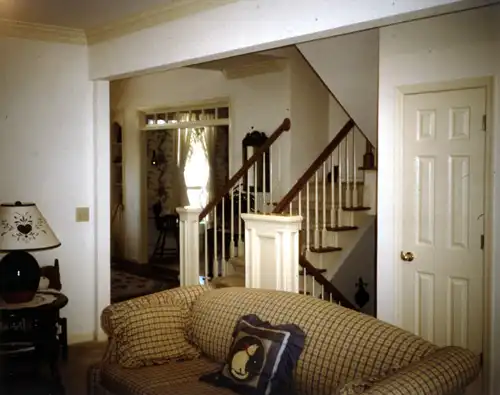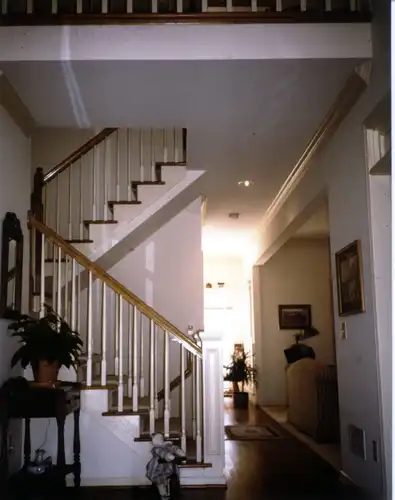 This home is reminiscent of Main Street USA with its classic features, but with the added warmth of a front porch that wraps graciously around the corner and down the side of the house. Entering the foyer you can see all the way through the house. The two-story foyer is flanked by the formal living room and dining room. The stairs are tucked back in the center of the house while still visible.