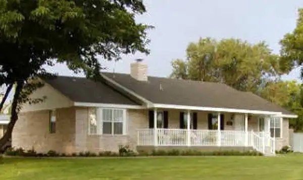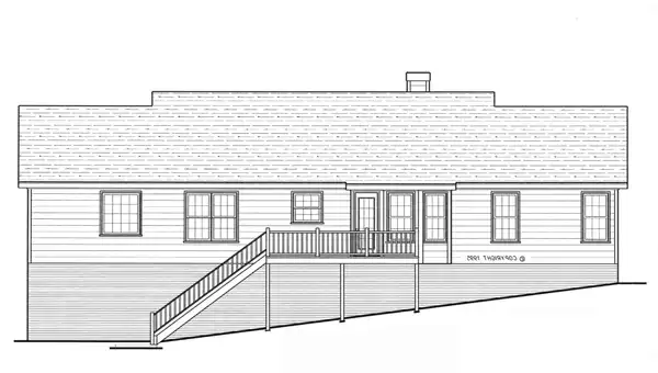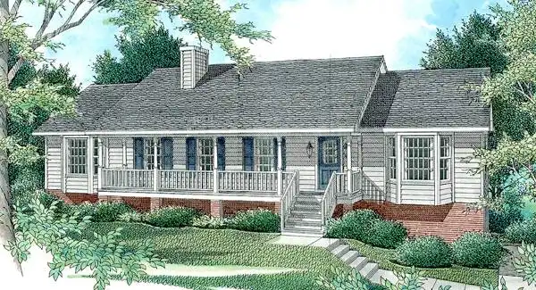 A welcoming porch is the focal point of this country-style home's facade. Inside, the secluded master suite is tucked away off the foyer. A corner garden tub anchors the deluxe private bath. A fireplace warms the central living area. The compact kitchen serves the dining room and the breakfast area with ease. A back sundeck is perfect for al fresco meals when weather allows. Two additional bedrooms share a compartmentalized hall bath. The lower level hosts a tuck-under garage and space for a future recreation room.