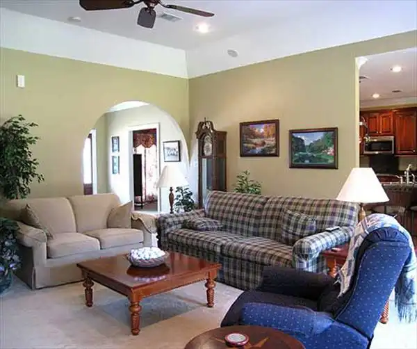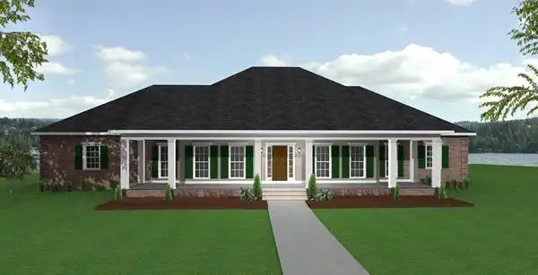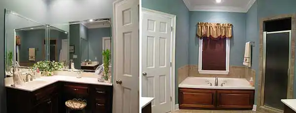 The Dining Room is perfect for entertaining. This Kitchen has a large corner pantry, double wall ovens, cook top, island and a raised snack bar. The Great Room boasts an 11'-0" Recessed Ceiling, vent less gas fireplace and view out onto the rear Porch. The Master Suite has large His and Her walk-in closets (there are three - take your pick!) This plan can be built with a two or three car garage.