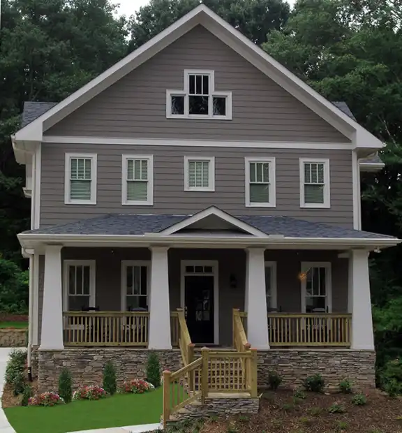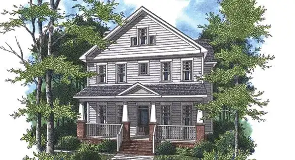 Reminiscent of Grandma's neighborhood, this two-story narrow lot design captures that feeling on the outside without sacrificing anything today's homeowner expects. The openness of the rear of the house helps bring the outside indoors despite a limited lot size. The rear staircase opens to a computer station outside the guest bedroom and is lit by a series of transom windows flooding the upper hall with light while preserving privacy.
