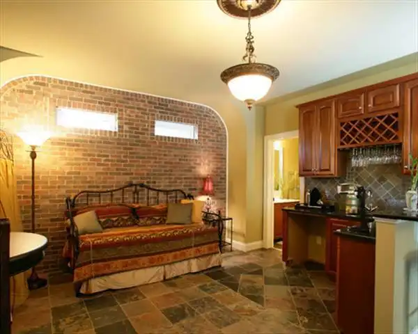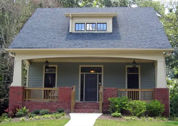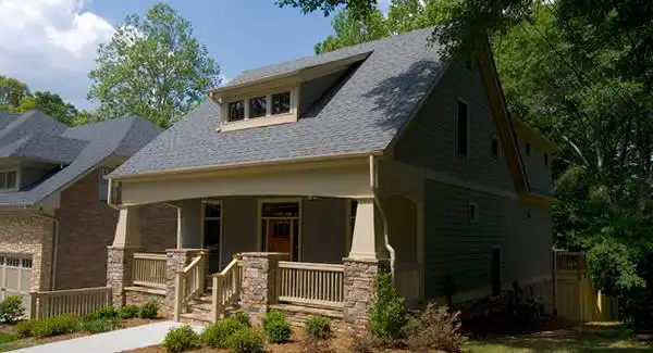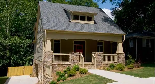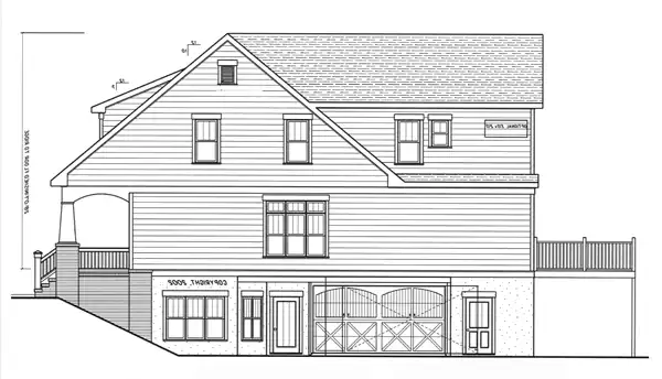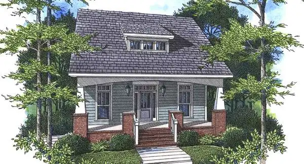 A Craftsman style bungalow with a surprise! This house is perfect for narrow lot development that has a little fall to the property. The unique garage entry allows you to fit this 30' wide plan with a side entry garage on a 45'-50' wide lot. This can be built where a rear loading garage plan wouldn't work making it a great addition to a traditional type neighborhood with less than perfectly flat conditions.