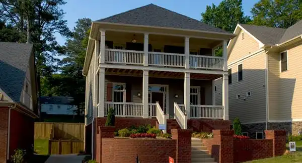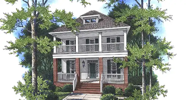Welcoming porches adorn this narrow drive-under plan. Never would you expect to find a 30' wide plan with a side entry garage that could fit on a 45'-50' wide lot, but when you examine the unique garage entry, you'll see how it can be done. This house is perfect for narrow lot development that has a little fall to the property. This can be built where a rear loading garage plan wouldn't work. ZIP CODE RESTRICTED IN 30080
