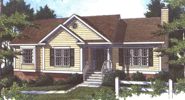 The gabled front porch provides a warm entrance for this raised ranch design. A great drive under garage design allows for a workshop or future finish beyond the garage portion of the basement.