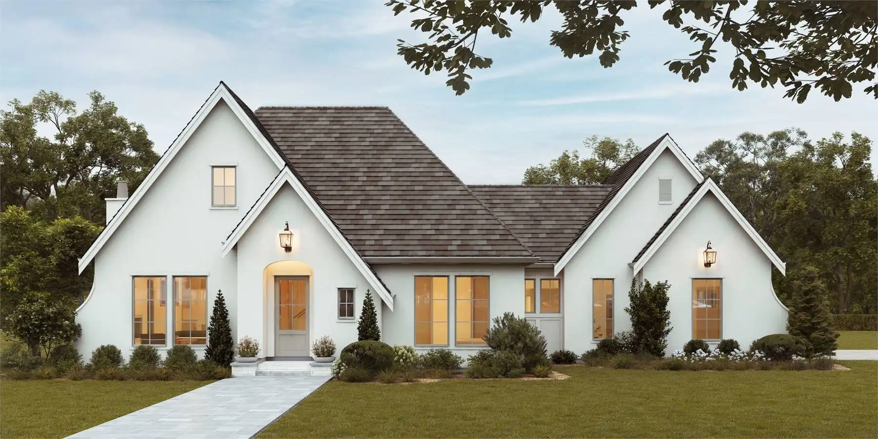 House Plan 5845 is a great home for the average family with 2,020 square feet, three bedrooms, and two-and-a-half bathrooms across two stories. And it comes wrapped up in beautiful European cottage style to check the box on curb appeal, too! The main level includes the open-concept great room, the primary suite, the powder room, and a back hallway with a computer desk, the laundry, and mudroom storage that connects to the garage. Two bedrooms plus a hall bath round out the second level. This is just the kind of layout today's families want, complete with a traditional architectural twist!