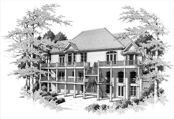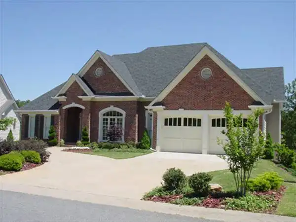 This three-bedroom home plan boasts a lovely brick facade. Two lower levels add interest to this unique plan. The living, family, and recreation rooms give you plenty of space to relax or entertain.
