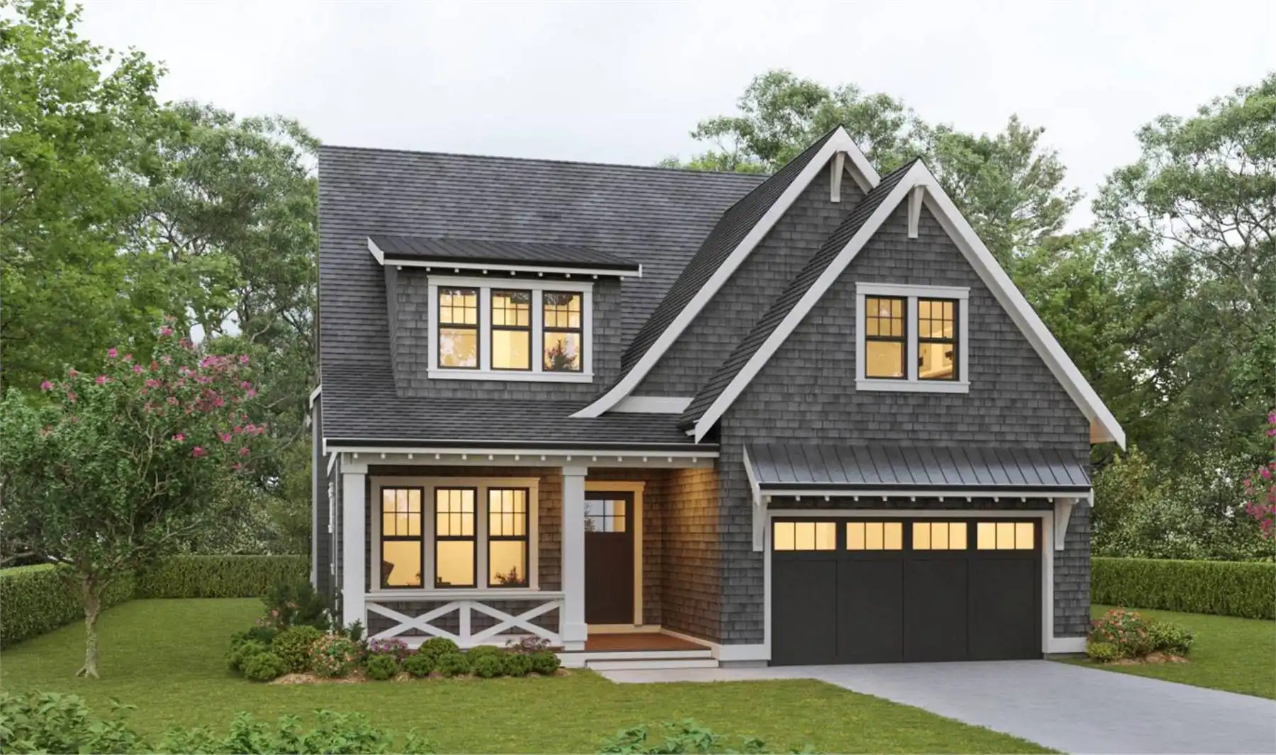 Are you looking for a family-friendly cottage with room to grow? House Plan 5895 is a two-story, 2,901-square-foot design with an optional basement that can add another 1,526 square feet. The main level includes a great room, a spacious island kitchen, a study off the foyer, and a mudroom coming in from the garage. All three bedrooms are placed upstairs along with the laundry room and a flexible bonus. The basement has space for another two bedrooms, a rec room, and a media room--you can finish it when you build or wait until you need it in the future!
