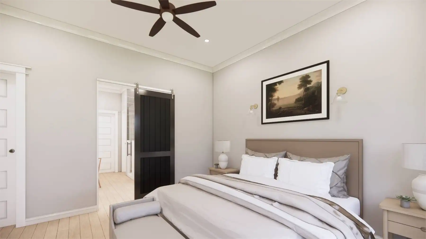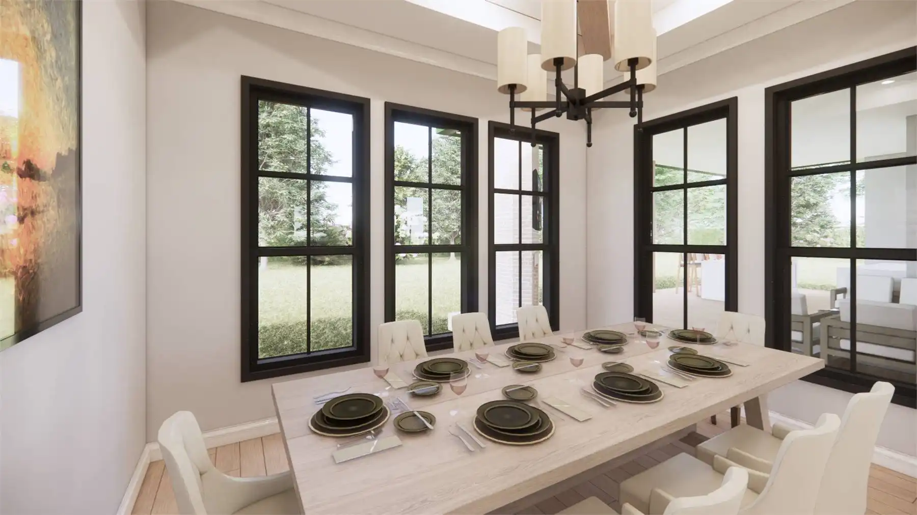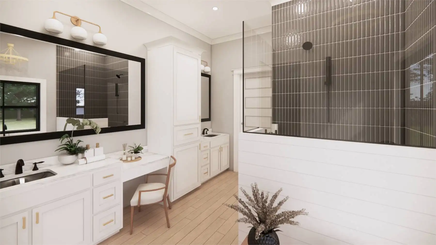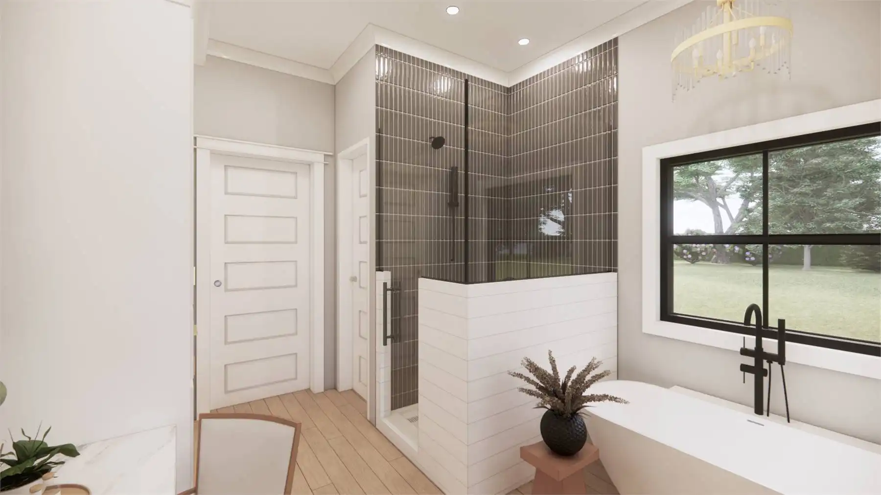Welcome to the charm of country living with a modern twist. This stunning one story Transitional Farmhouse with 2,768 square feet blends a rustic aesthetic with contemporary amenities. With four large bedrooms that are separated from the main bedroom for privacy so everyone will have their own personal space in this house. The open-concept living area, where the kitchen, dining area, and family room easily combine into a warm and inviting gathering zone, is the focal point of this entire home. Equipped with modern amenities and a spacious island, the chef-inspired kitchen makes meal prep easy. Throughout the home, you'll appreciate the attention to detail, from the charming fireplace in the family room to the convenient mudroom off the garage. Experience the serene beauty and modern comforts of this Country Farmhouse plan.