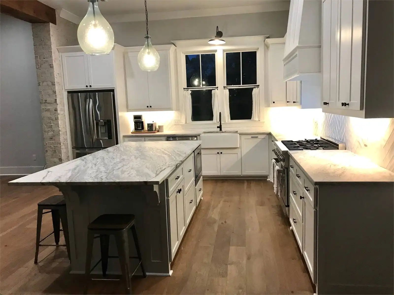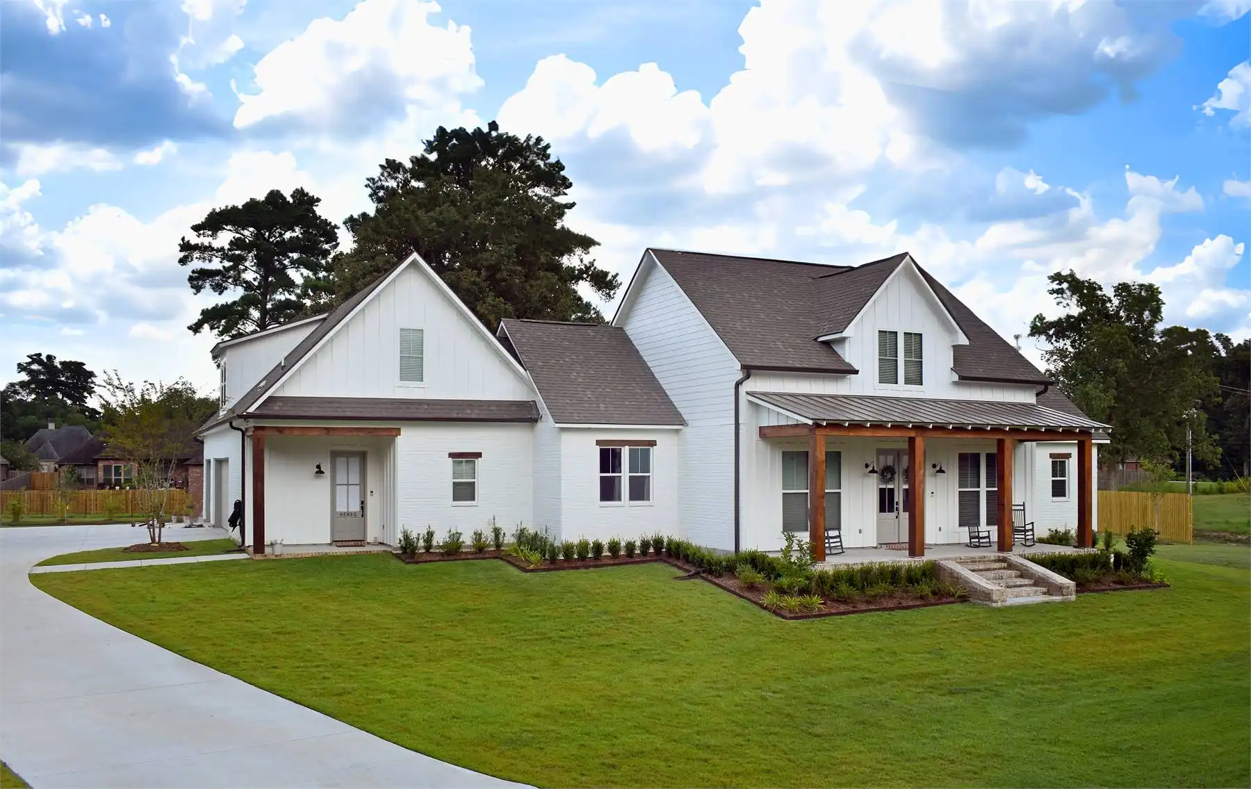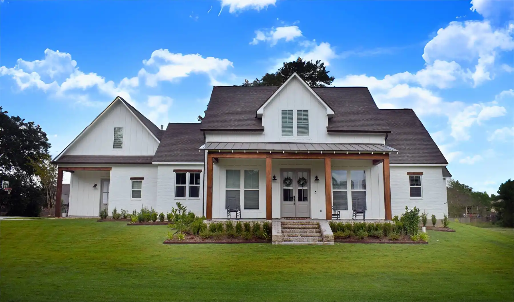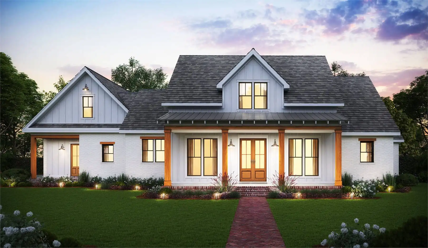 House Plan 5947 is a farmhouse with more than meets the eye! Behind that beautiful facade, you'll find 2,731 square feet with three or four bedrooms, three-and-a-half bathrooms, and great indoor-outdoor connection. The layout places a bedroom/den by the foyer while the other three bedrooms fill out the other side of the house, with one bedroom suite and another bedroom by a hall bath in the front hall while the primary suite is placed in the back hall. The great room is open and also connects to the back porch, where you'll find an outdoor kitchen that really expands this home's functional space. Last but not least, the garage is located at the back of the house with side entry and has space for two cars and a boat. There's also a bonus over that, if you need more!