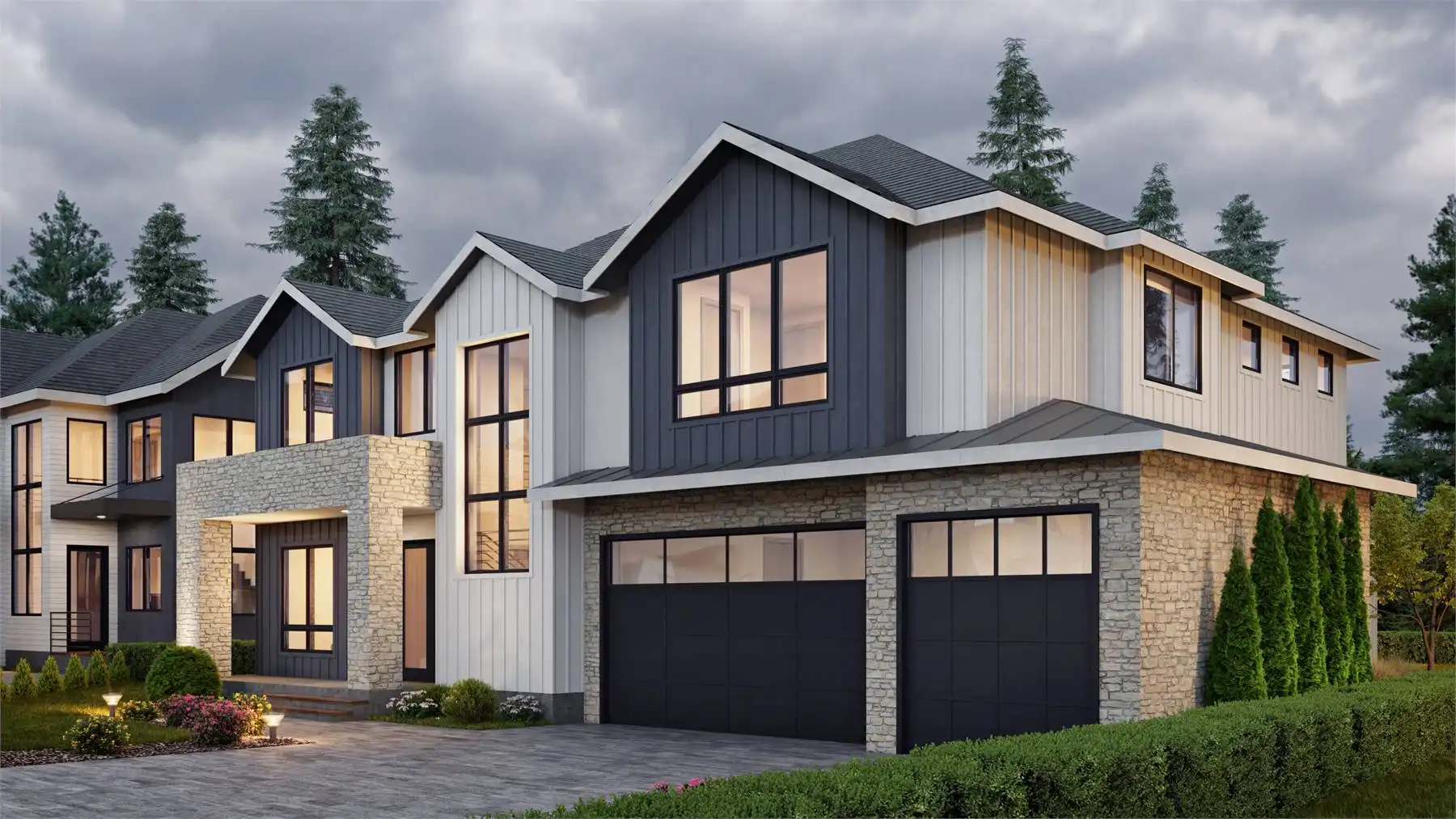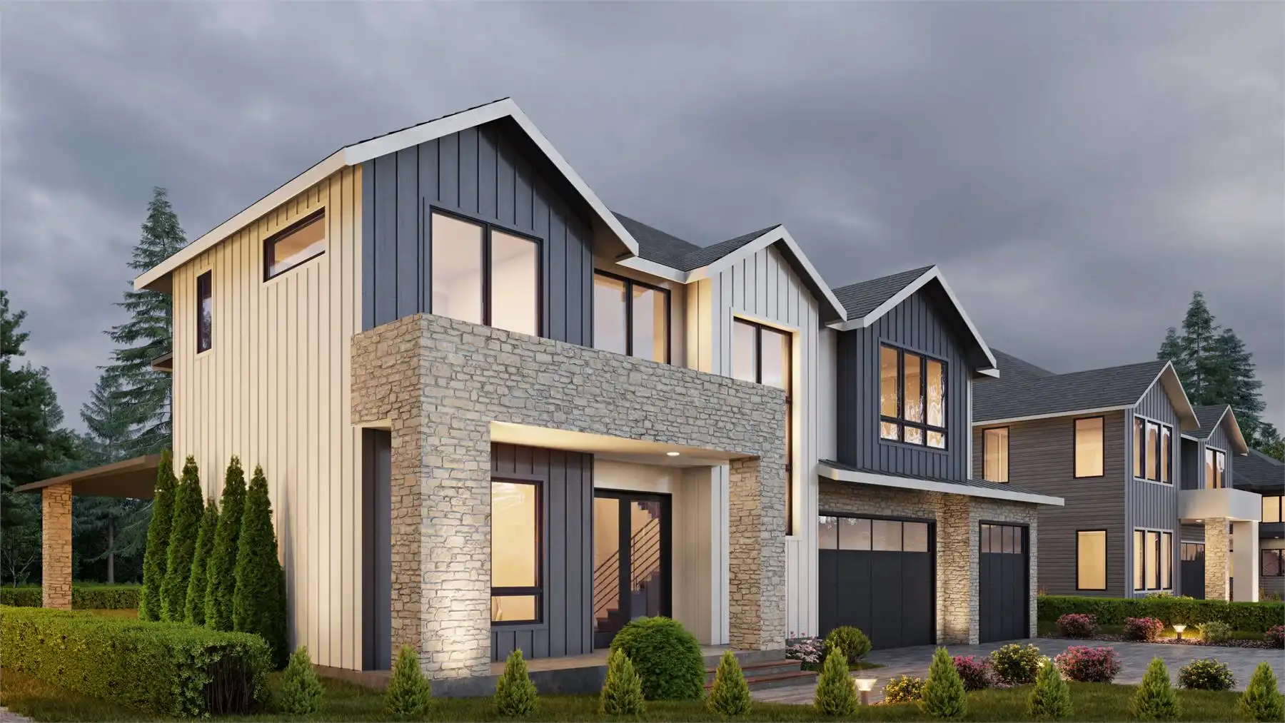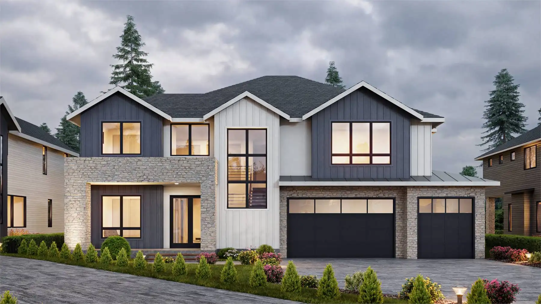 Step into this inviting 3,352 square foot contemporary farmhouse, a harmonious fusion of comfort and sophistication. The exterior, adorned with a combination of wood and stone elements, enhances its aesthetic allure. As you enter, the expansive two-story foyer sets a grand tone for the entire residence. To the right, a versatile space beckons, ready to transform into a sixth bedroom or an office, accompanied by a conveniently located bathroom. Navigate through the home to discover a thoughtfully designed mudroom, offering practical storage solutions tailored for busy lifestyles. The great room, featuring a welcoming fireplace, becomes the core of relaxation and social gatherings. On the opposite side, a generously sized kitchen with an inviting island takes center stage as a hub for culinary adventures. Adjacent to the kitchen, a chic dining room creates a setting for refined meals and entertaining. Towards the rear, a delightful wrap-around covered patio seamlessly integrates indoor and outdoor living, providing an enchanting space to relish the outdoors in any weather. Ascend to the upper level, where five bedrooms, individually crafted for comfort and style, await. The master suite stands out as a lavish retreat, offering a secluded haven for relaxation. A versatile loft area caters to specific needs, while the convenience of an upstairs laundry room adds a practical touch. Cap off this contemporary farmhouse experience with a three-car garage, ensuring ample space for both vehicles and storage.