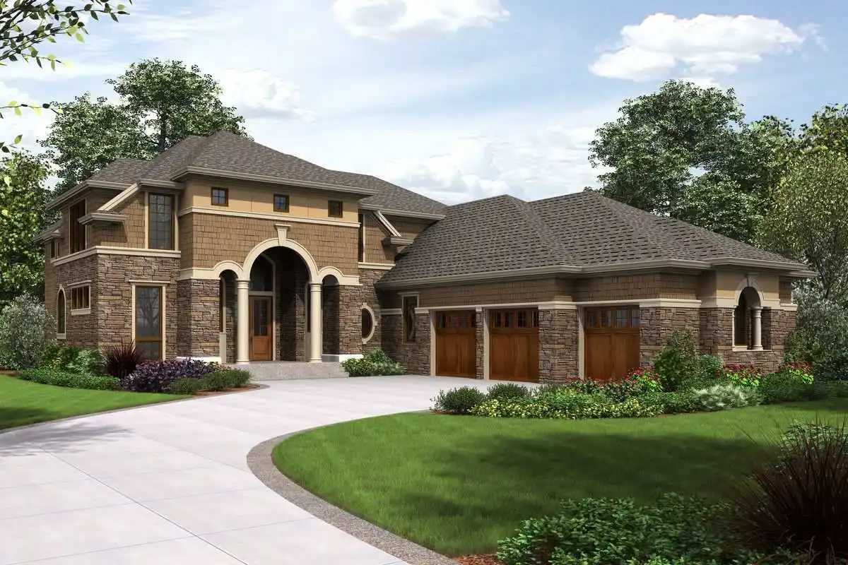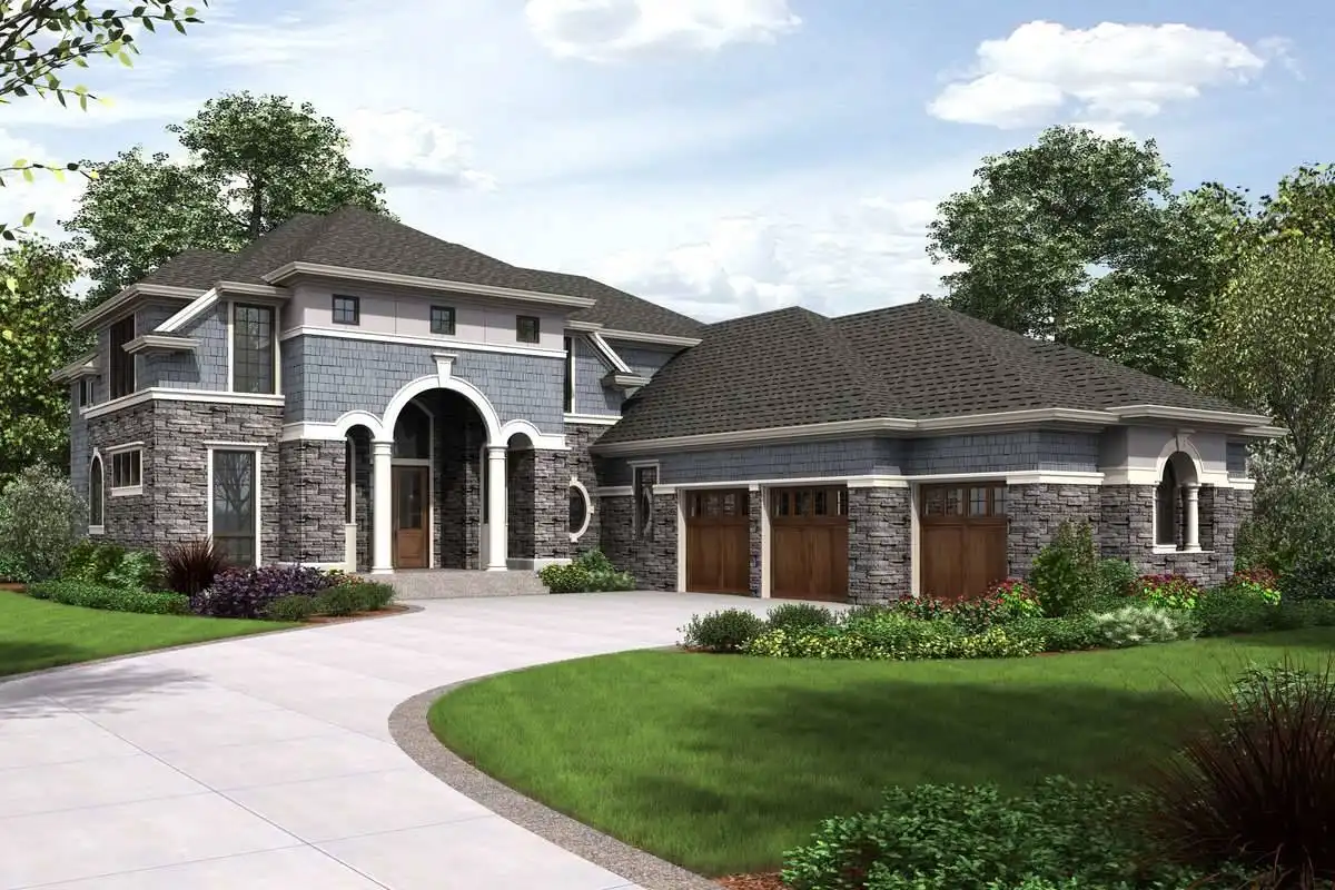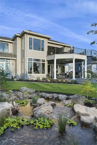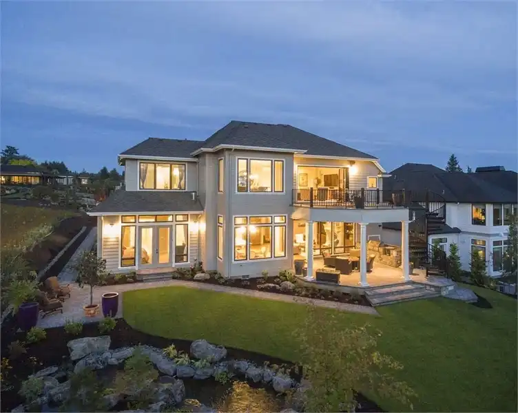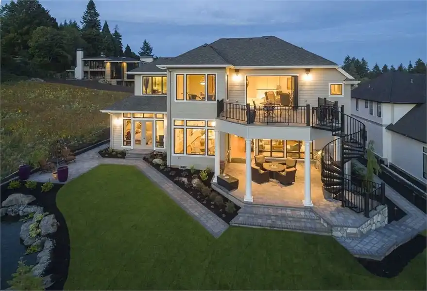 This magnificent Modern style home features some of the most gorgeous views and natural light that you have ever seen in a property. The beauty begins with the astonishing front entrance and its massive windows which catch ample amounts of sunlight, almost highlighting the space. The front doors swing open on to the foyer which, in turn provides access to the formal den as well as a short hallway which leads to the master. Live in the lap of luxury with this master and its spa bathroom with soaking tub and spacious walk-in closet. The main living space of this 4,455 square foot home is not to be outdone, as a gorgeous open concept great room joins with the dining room and spacious island kitchen. A barbecue porch is accessible off of the great room, with the stairs to the second level nearby. Upstairs is home to two more bedrooms, each of which feature their own full bathroom, as well as your very own gym that can double as another bedroom if necessary. An expansive rec room is highlighted by a full bar, as well as with sliding glass doors which open on to the gorgeous second story balcony.
