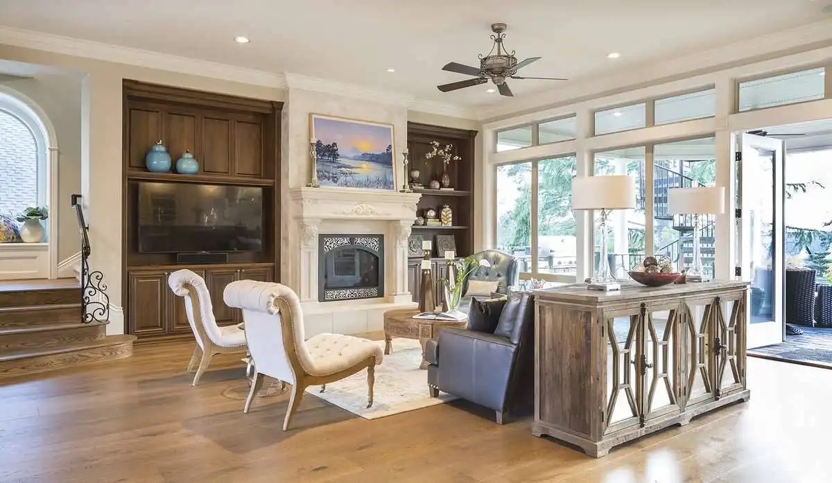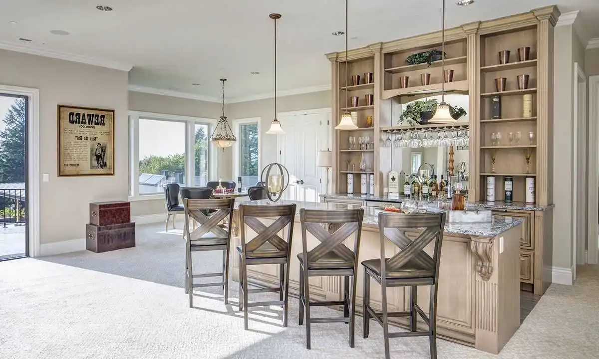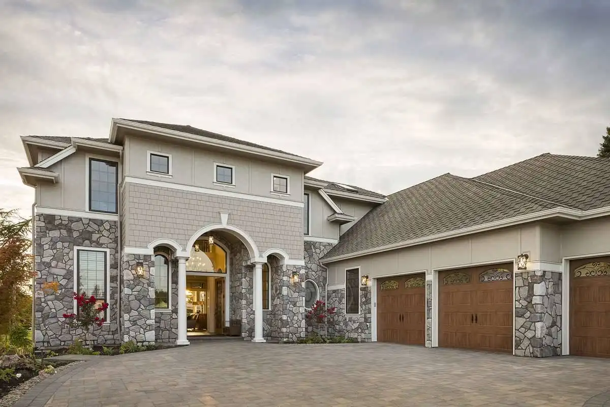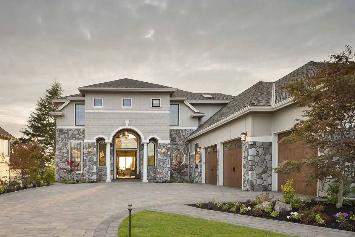 This magnificent Modern style home features some of the most gorgeous views and natural light that you have ever seen in a property. The beauty begins with the astonishing front entrance and its massive windows which catch ample amounts of sunlight, almost highlighting the space. The front doors swing open on to the foyer which, in turn provides access to the formal den as well as a short hallway which leads to the master. Live in the lap of luxury with this master and its spa bathroom with soaking tub and spacious walk-in closet. The main living space of this 4,455 square foot home is not to be outdone, as a gorgeous open concept great room joins with the dining room and spacious island kitchen. A barbecue porch is accessible off of the great room, with the stairs to the second level nearby. Upstairs is home to two more bedrooms, each of which feature their own full bathroom, as well as your very own gym that can double as another bedroom if necessary. An expansive rec room is highlighted by a full bar, as well as with sliding glass doors which open on to the gorgeous second story balcony.