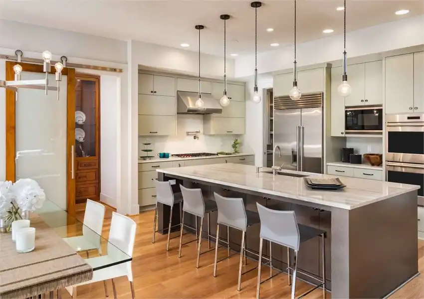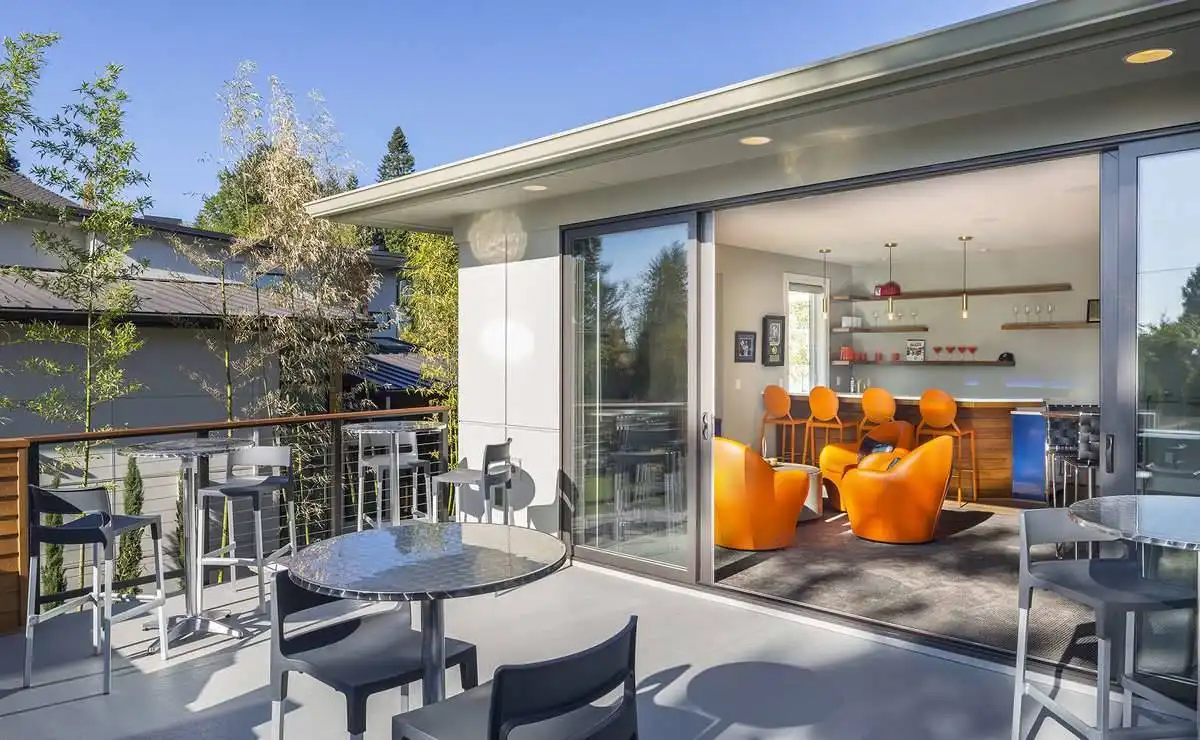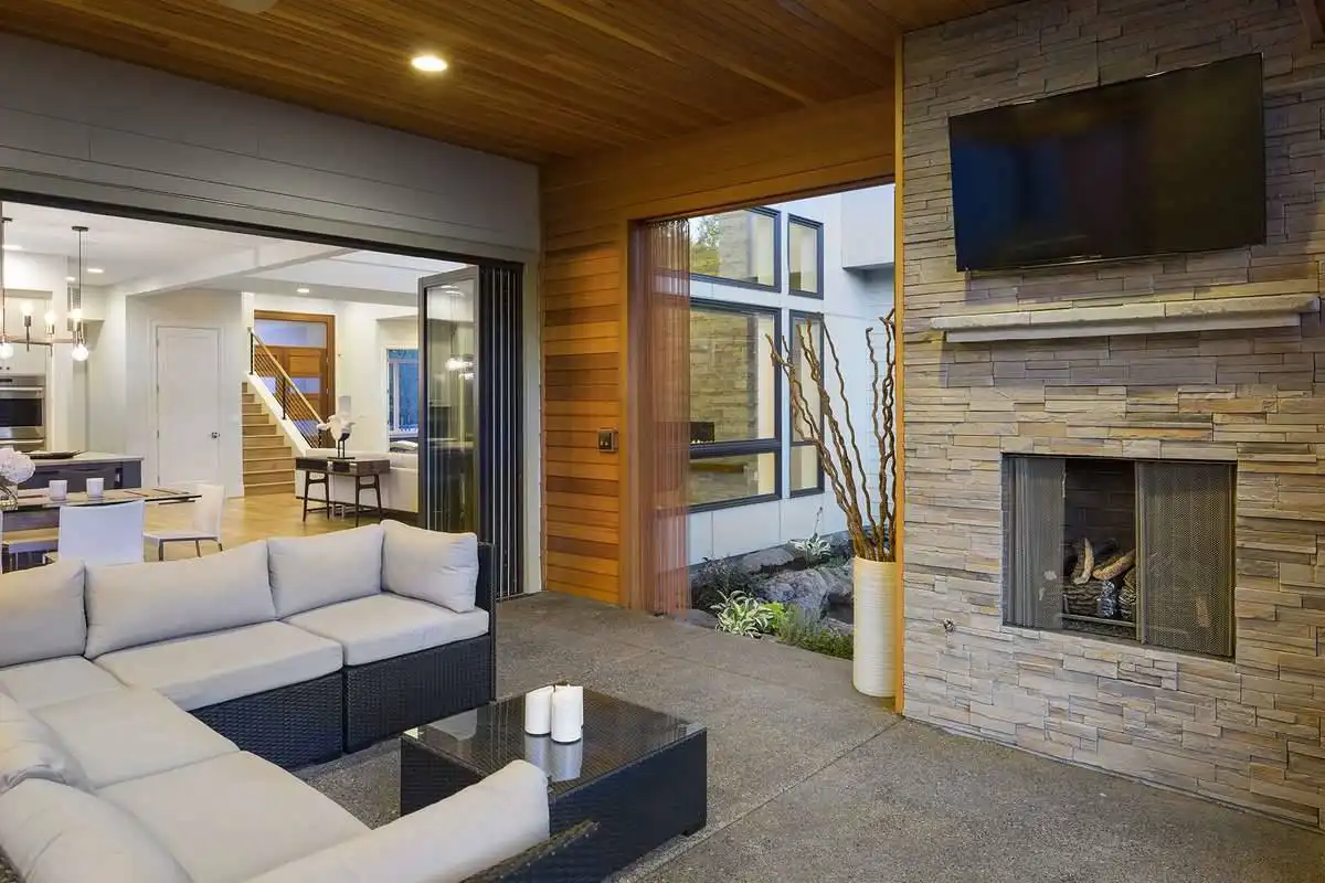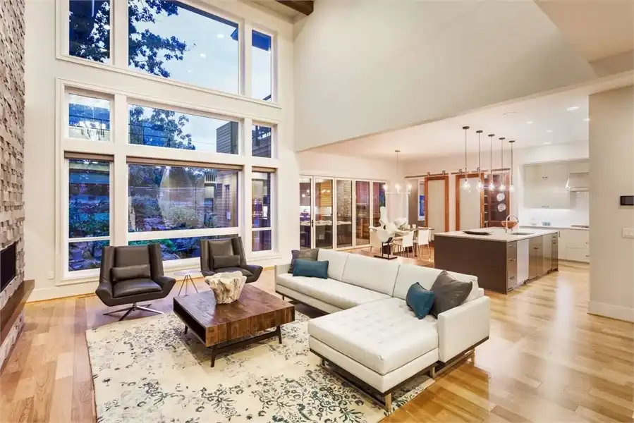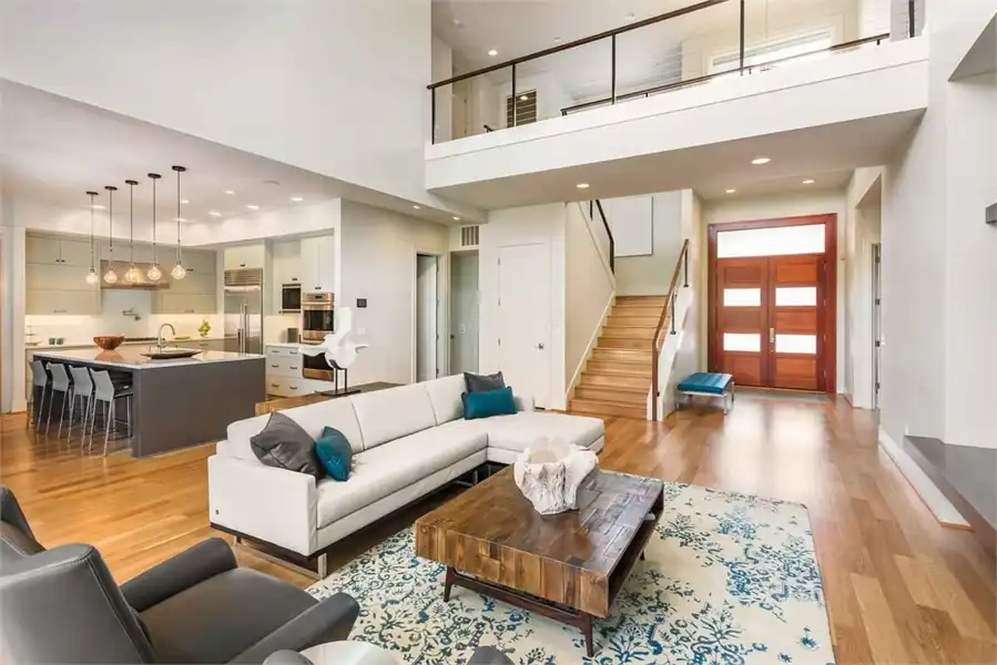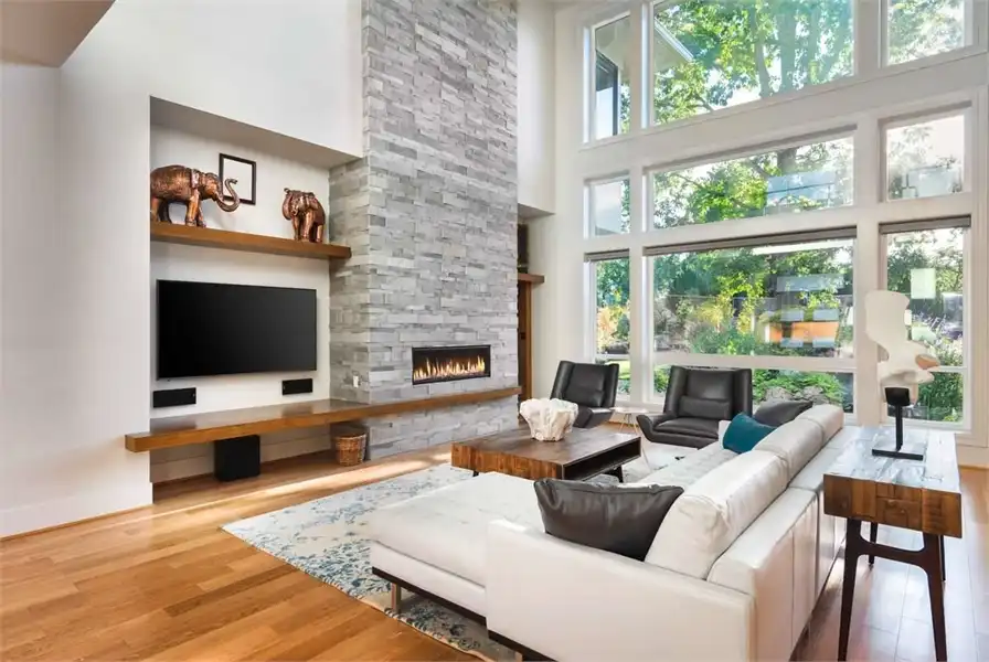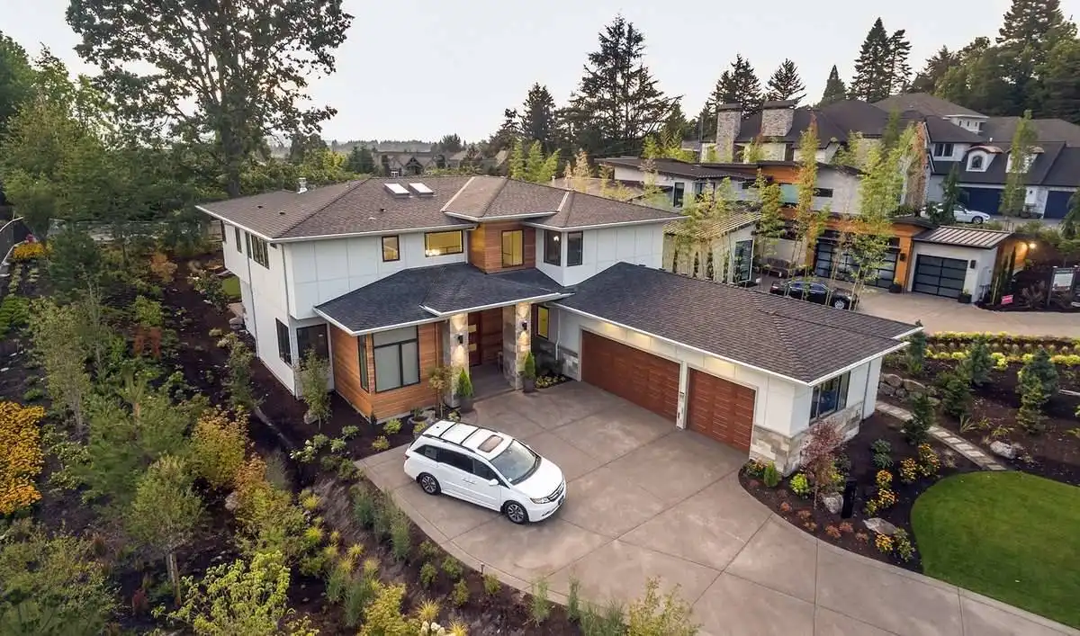 Bursting at the seams with great features, this 2-story modern home provides an extremely comfortable 4,106 square feet of living space which includes 4 bedrooms and 3.5 bathrooms. The front façade is impressive with its sloping roof and two-story front entryway that joins with the 3-car garage with its very own dedicated shop space. As you step on to the front porch, you are greeted by double doors, both of which swing open on to the two-story foyer. From there, the journey throughout the home begins as you can find a formal den/office, as well as a fully equipped guest room and en-suite to your immediate right. Directly ahead of you lies an amazing great room. With its two-story ceilings and open concept, this room is sure to be a family favorite. The great room is open to the gourmet island kitchen and dining room, while on the other side, features a hallway into your own private gym! The dining room provides access to your covered outdoor kitchen, a great option for neighborhood barbecues. Upstairs finds the rest of the sleeping areas, as you step foot on to the open-air second floor landing. The entire right hand side of this floor is occupied by your expansive master suite with its private bath and walk-in closet. The other side features two more bedrooms with a shared jack and jill bath, as well as a large game room with a built-in wet bar and sliding glass doors which open on to the second story terrace, perfect for watching a sunset at the end of a long day.Feast your eyes on all that is this beautiful contemporary estate.