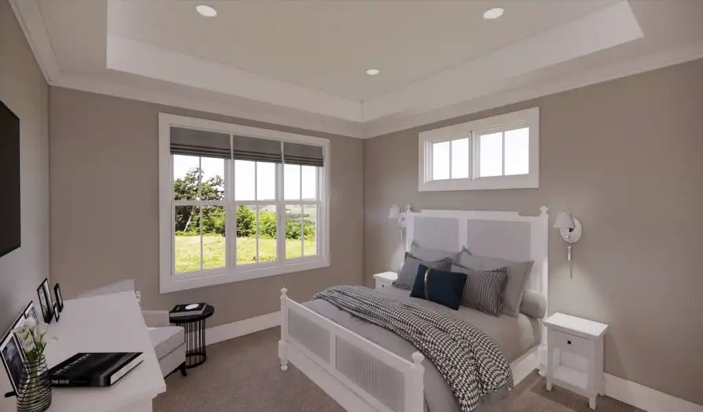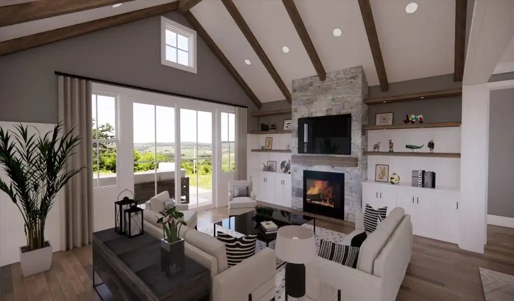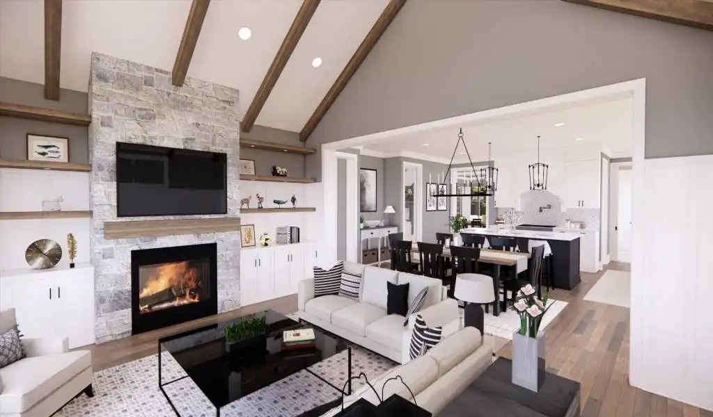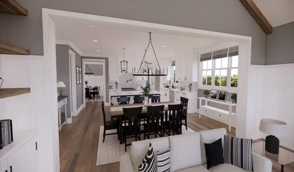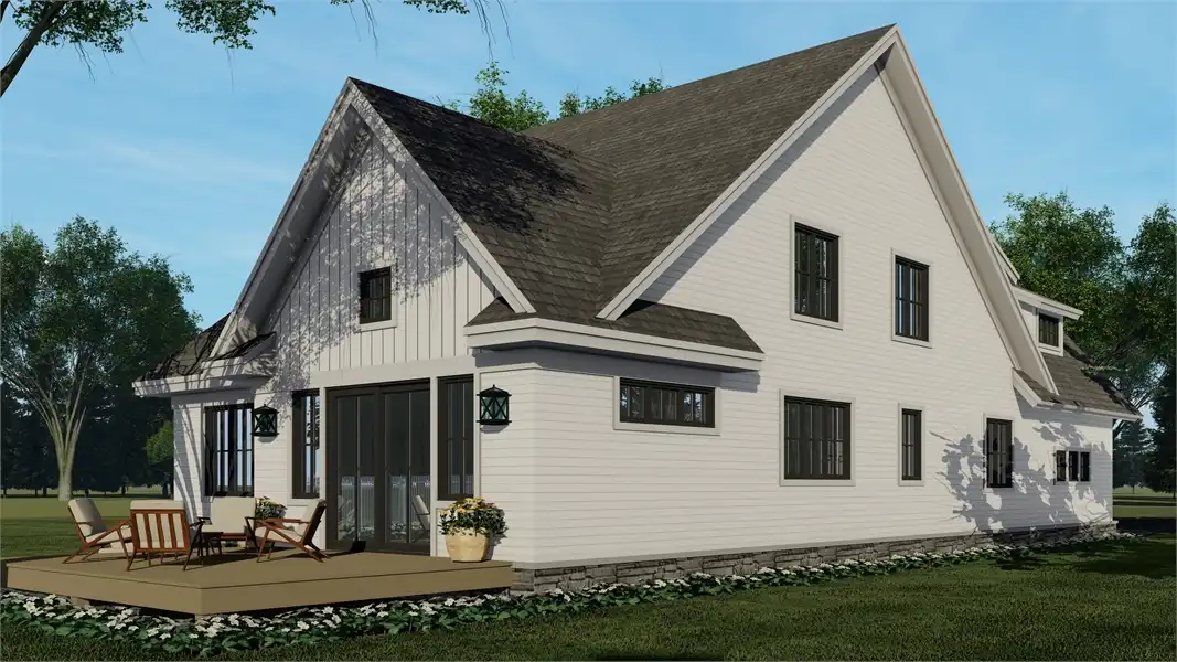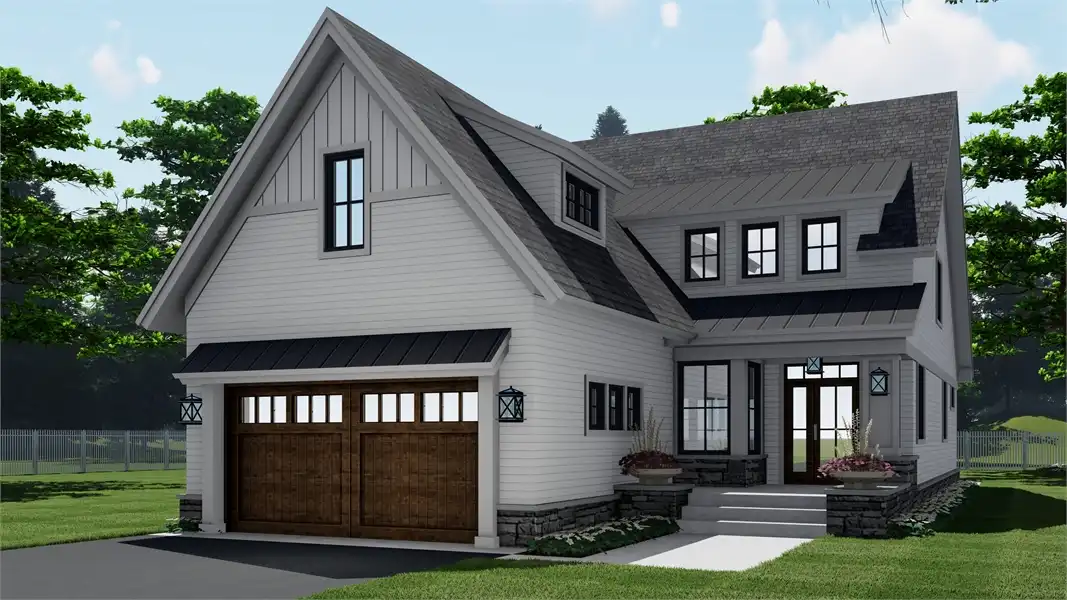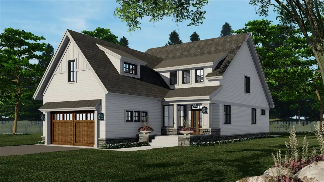 A narrow design doesn't mean that this beautiful 2-story farmhouse doesn't have a ton to offer. Bursting with unique style, this modern charmer has 2,870 square feet of living space, including 4 bedrooms, 2.1 bathrooms, and tons of other enjoyable areas. As you enter the first floor, notice the open layout which flows through the foyer and dining room, to the kitchen and vaulted great room. You'll also notice the convenient additions of a 2-car garage and a first-floor master suite, both accessible and great in their own ways. Upstairs is where you can find the rest of the bedrooms, each with their own large closets, full of storage for even the biggest of wardrobes. And for future expansions, be sure to check out the bonus room space which sits above the garage!