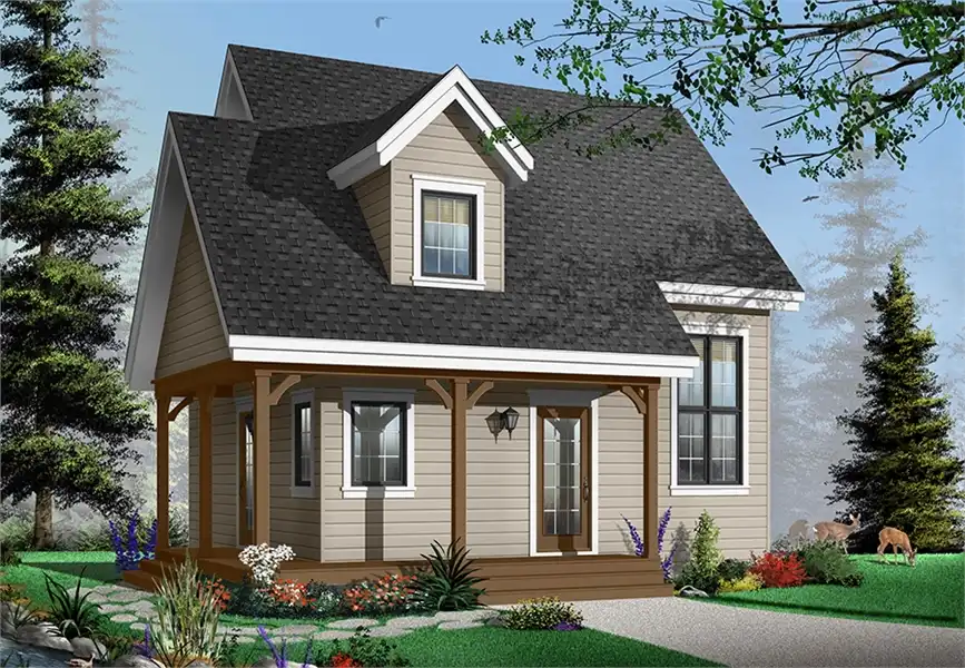 Adorable 2 beds, 2 baths Country house plan. Plan description: kitchen with island, dining room, family room, shower room / laundry facilities.