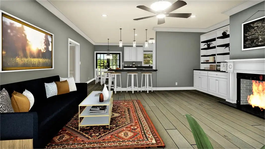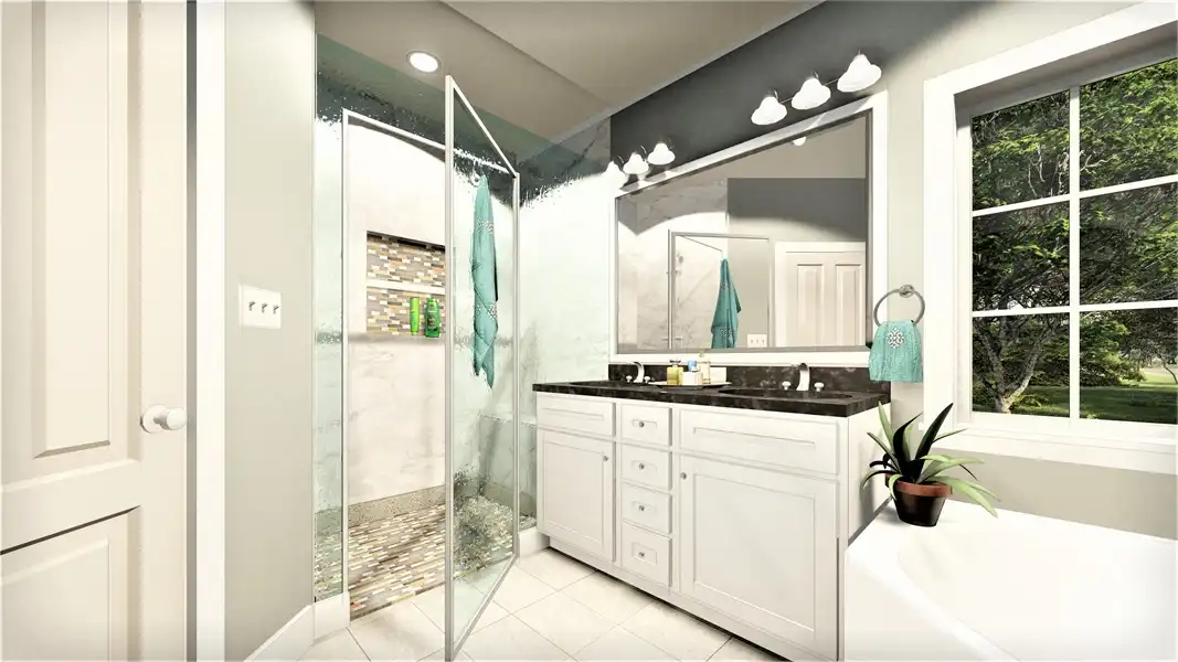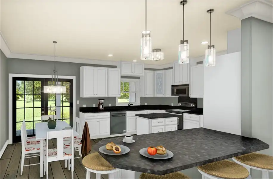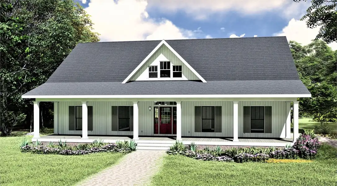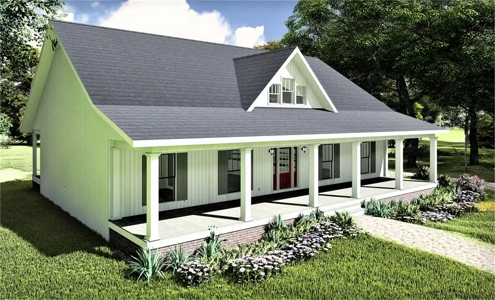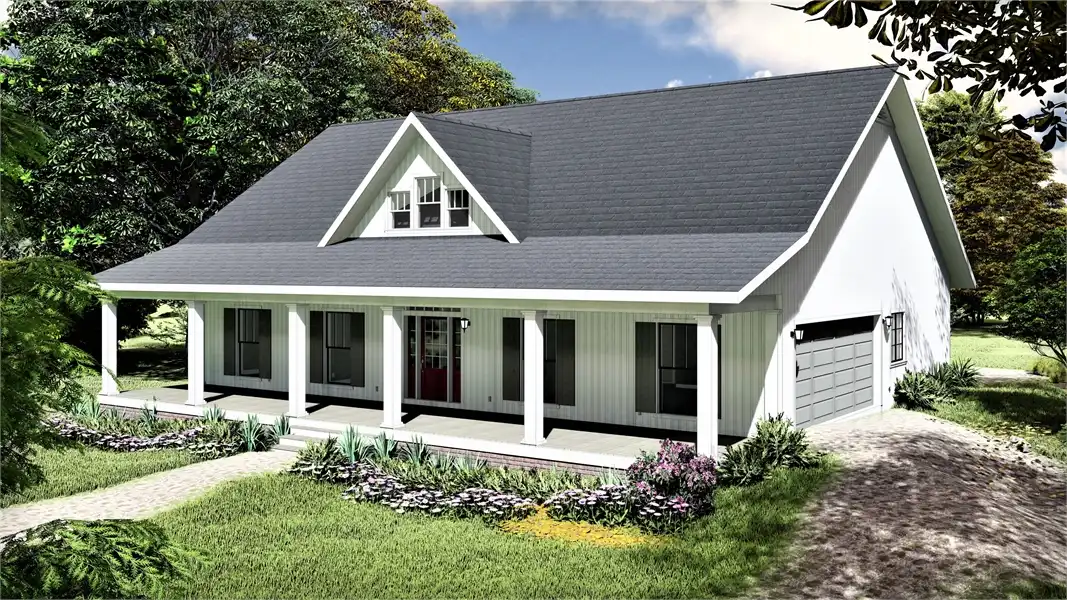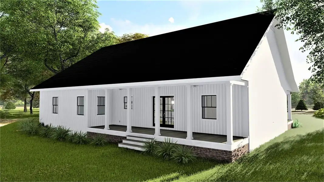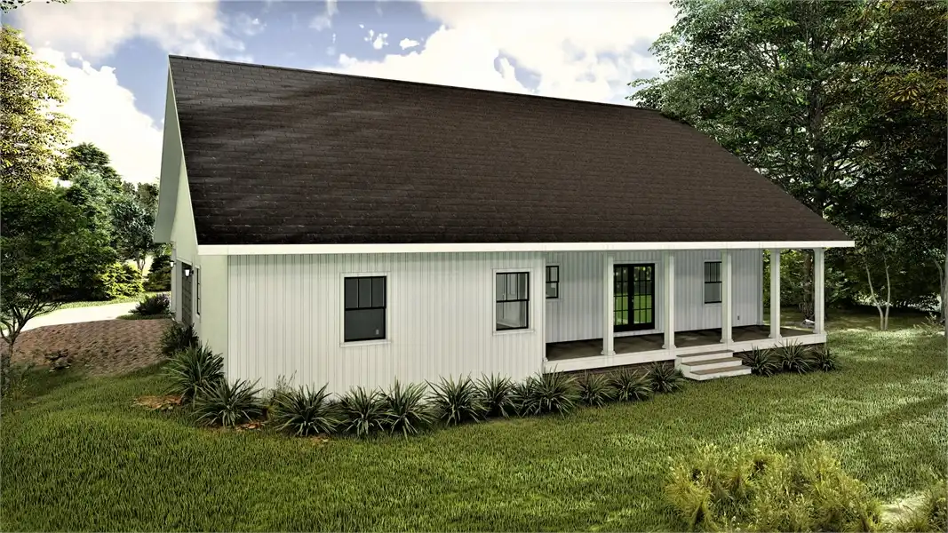 Affordable, practical, and all-around beautiful, this farmhouse-style plan is a great option for a new or growing family. A 3 bedroom, 1,611 square foot ranch layout is accessible all around. Highlights of this home include its 2-car side-entry garage, a massive covered front and back porch, and an open concept design which joins the living room and eat-in kitchen together. Also notice the large master suite with its impressive soaking tub and nearby walk-in closet. Plus, the laundry room is just around the corner, making quick work of weekend chores.