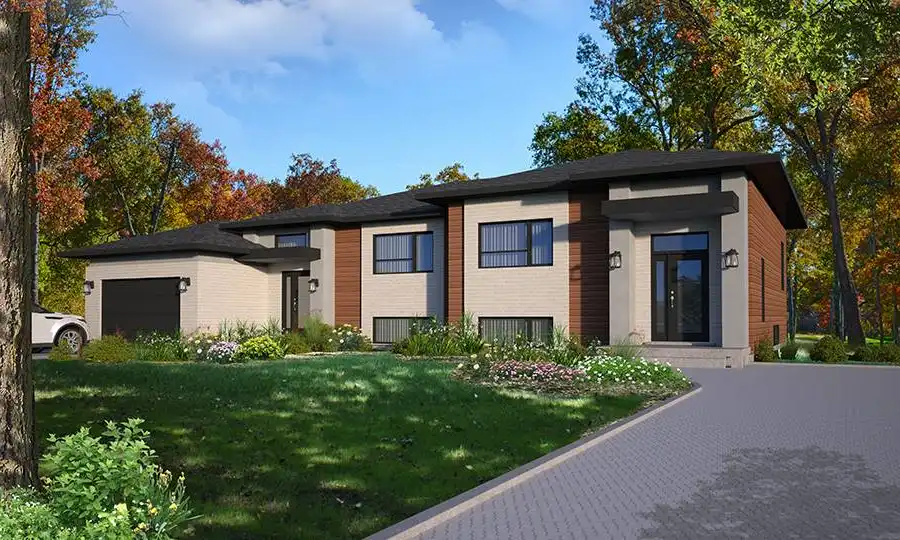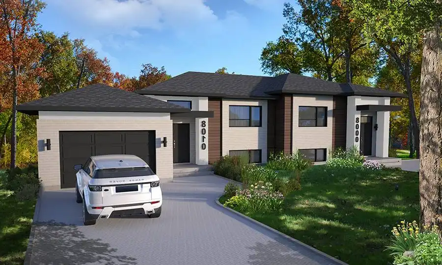 Modern duplex plan with 3 bedrooms and 2 bathrooms per unit On the main level the split entrance offers a large closet as well as a ceiling of over 11 feet high in the lobby which gives amplitude tot his normally restricted space. On both sides the master bedroom (parents' room) is located on the ground floor and has a walk-in closet. In addition, a shower room or a bathroom, with bath and separate shower are suggested on both sides. A kitchen with island, and open to the dining room and living room makes this space very friendly and conducive to receive family & friends. Patio doors at the back of the house and several windows contribute in inviting beautiful natural light on the ground floor. In the finished basement you will find 2 secondary bedrooms, an additional family room, a bathroom, laundry room as well as storage area.
