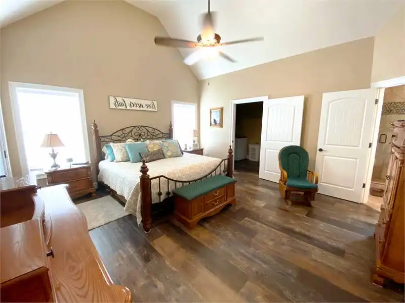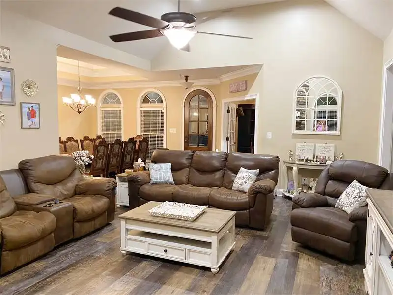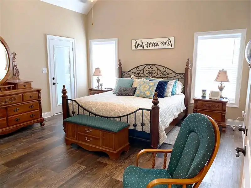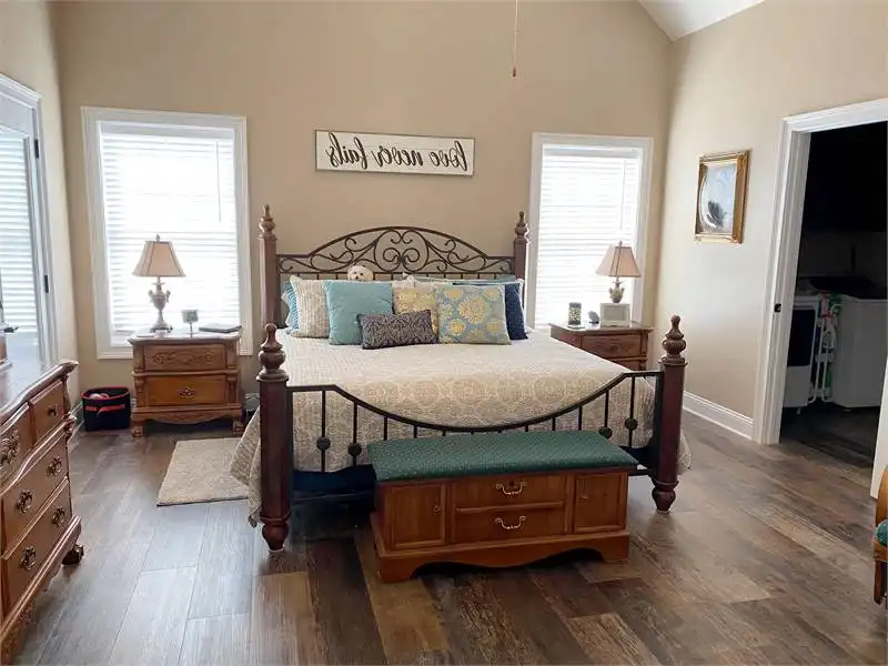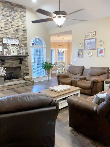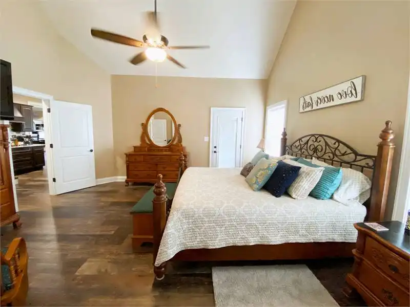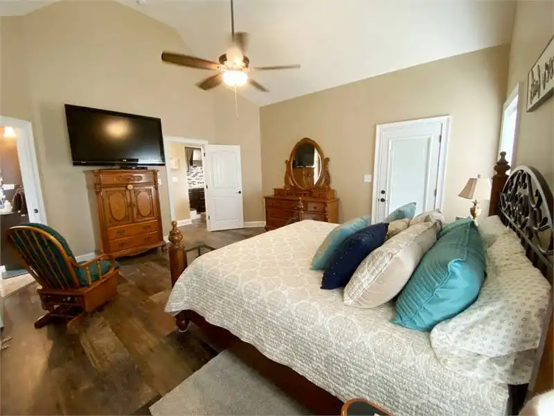 The exceptional master suite, with direct access to the deck, a sitting area, full-featured bath, and a spacious walk-in closet, create a true"Masters retreat". A bay window brightens the breakfastroom and kitchen. Vaulted or tray ceilings adorn the living, family room, dining, and master suite. Other rooms have 9' ceilings. The secondary bedrooms each measuring apx. 13'x11' have walk-in clsoets and share a " Jack an Jill" bath. The screened porch measures apx. 15'x 14'.