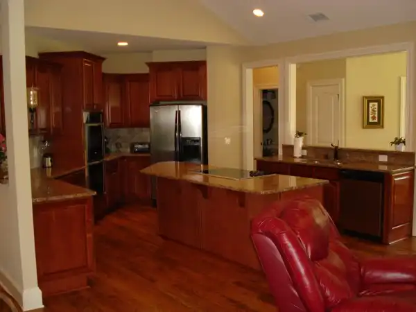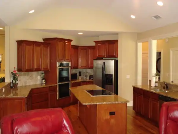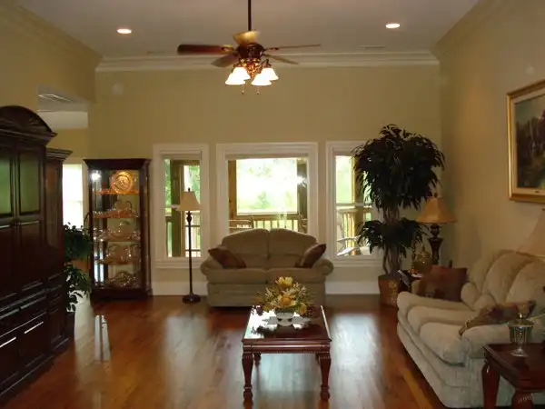 The inviting front porch features an 11' high ceiling as does the entry. Just beyond the entry are stairs leading to an expansive bonus room with its own bath. The 16'x19' family room has an 11' ceiling and a rear "window wall" with "french doors" leading to the enormous covered porch brightened by 6 skylights. The angled kitchen, dining and hearth room are open, crowned with vaulted ceilings, and surrounded by windows. The hearth room includes a TV niche. The 16'x15' master suite is truly sumptuous with it's 11' tray ceiling, sitting area, his and hers walk-inclosets and full featured bath. Each of the secondary bedrooms features a private bath and walk-in closet. Bedroom 2 also has a built-in desk with bookshelves. Ceiling heights not noted otherwise are 9' except for the bonus which is 8'.
