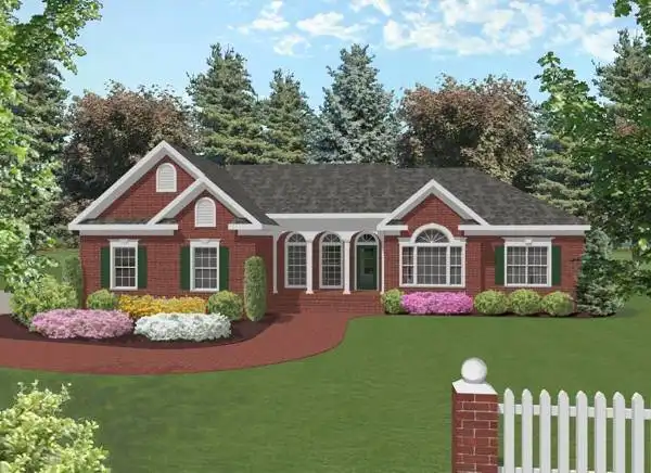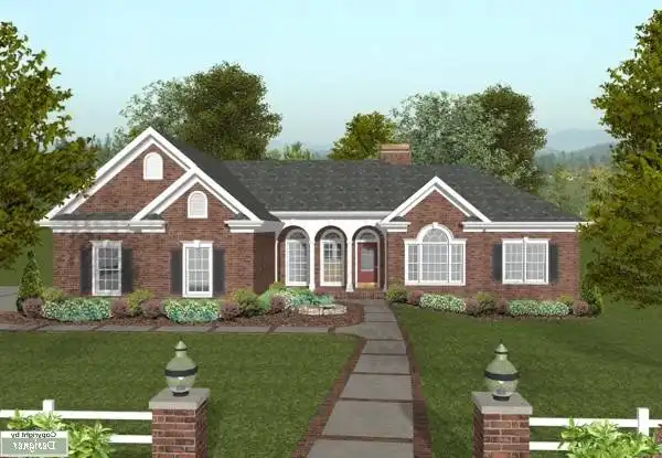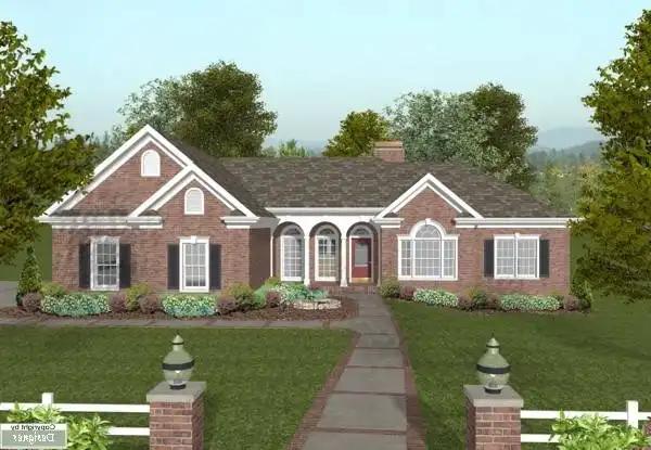 We've integrated our customer's most requested features into a mid-sized ranch in the creation of this attractive new design. The elegant brick exterior is accented with a "Palladian" window, multi-level trim and an inviting front porch. A "cost-cutting" 6:12 main roof pitch, an exquisite master suite, a 3-car garage, and a large screened porch are sure to make this 1992 square foot home irresistible.