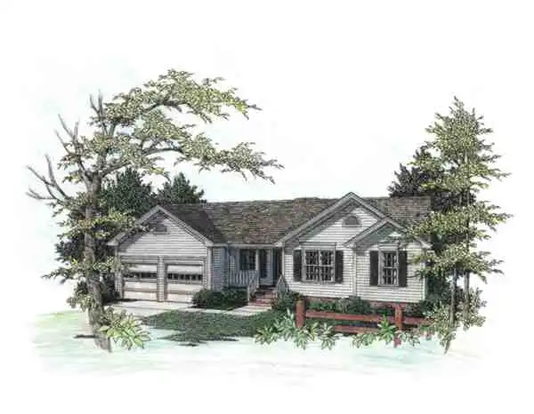 An inviting front porch highlights this attractive ranch. Perfect for homeowners with small children, this "bedroom-together" design is spacious, yet economical, at only 1069 heated square feet.