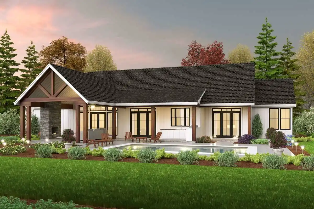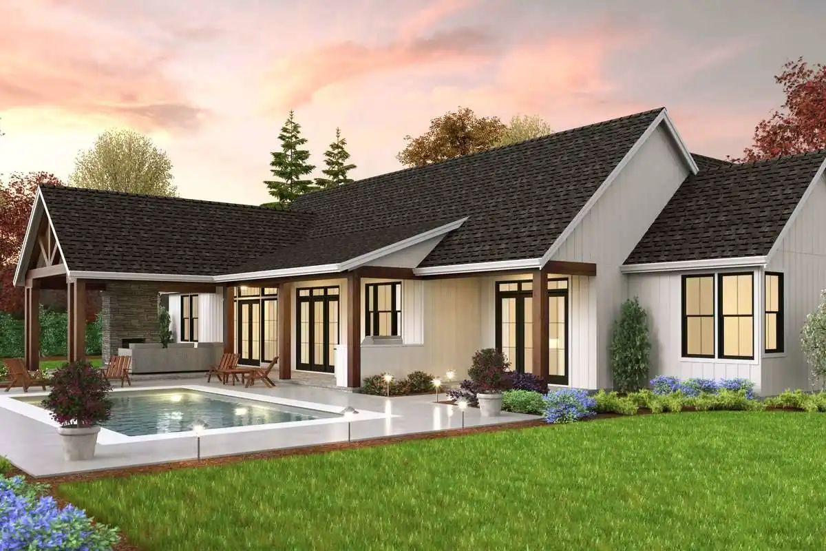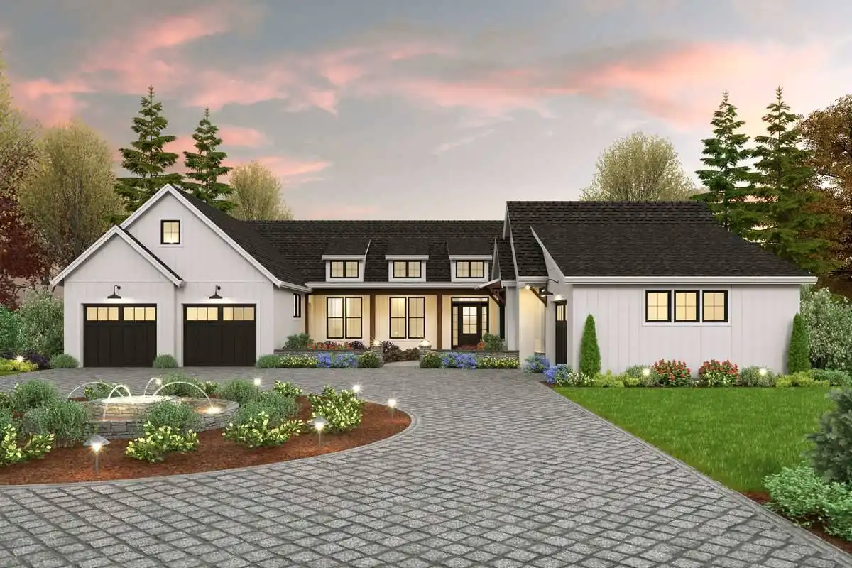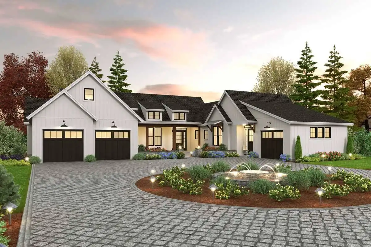 An easy and elegant plan, ideal for a growing family and the farmhouse lover! The home is an elegant yet functional plan with 3,669 square feet, be prepared to be blown away. Host events of any size and welcome guests to stay in the private guest apartment with a private garage entrance. The amount of space this home has will make you say wow. There is an open feel throughout the home that allows you to soak all it has to offer! The home features a whopping four bedrooms and four and a half baths. The master bedroom features a spa bath with a walk-in closet and a private porch. The wonders of this plan also display two kitchens, one inside and outside.