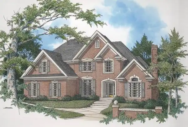 This luxurious 1-1/2 story blends a spectacular open floor plan with the increasingly popular "master-down" design. The attractive brick exterior is accented with stucco trim. Though this lovely home measures 2954 square feet, it "feels" considerably larger. Just beyond the inviting 2-story entry lies an open foyer which vaults to 18'. To the right is a spacious dining room surrounded by decorative columns. Just beyond the "bridge" is an enormous two-story family room. The sumptuous master suite includes a tray ceiling. Optional pocket doors provide direct access to the study. It's bath features his and hers vanities and a large walk-in closet. The very roomy kitchen features a 4'x4' center island. The "bayed" breakfast area with its vaulted ceiling adds a real flair. The basement provides plenty of storage area and allows for future expansion. Lower level rooms which are not vaulted have 9' ceilings. Upstairs, accessed by the "bridge", are three large bedrooms, one with a private bath, and the others sharing a "Jack and Jill" bath. All upper level rooms have 8' ceilings.