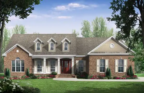 This attractive country house plan offers a spacious Great Room with a gas fireplace. This space is large enough to host any gathering in comfort and style. The island kitchen is open and inviting. Just a few steps away, the rear porch includes an outdoor kitchen, for grilling and picnics. The secluded master suite is roomy and luxurious, with two walk-in closets, a garden tub and a separate shower. Please note that if you order the basement version of this home, the depth of the plan will be 60 ft., due to the stairs behind the garage. The garage is pushed forward 4 ft.