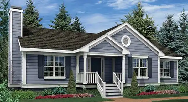 A simple double gable creates a warm feel to the entry of this compact design. The cathedral ceiling in the living room creates a dramatic fireplace wall. A U-shaped kitchen provides plenty of counter space and storage. The laundry closet is conveniently located in the hall, minimizing transportation of dirty clothes. The cathedral ceiling in the master suite creates a plant shelf that expands the size of this room, making it feel larger than it is. The master bath has a garden tub with a showerhead allowing for the luxury of the oversized tub while enjoying an oversized shower as well.