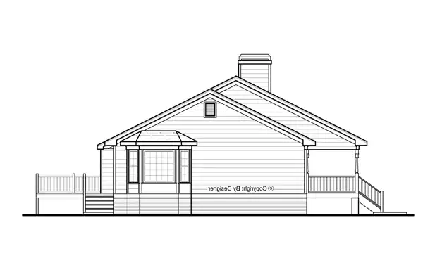 Simple but elegant, this small ranch looks inviting with its long porch and full-length windows. Enter into a small foyer, which opens into the modified cathedral ceiling of the Living Area framing a fireplace on the opposite wall. Bay windows add light and space in the two dining areas and create an open kitchen without having an outside window. The kitchen opens to the living area creating a breakfast bar. A third bay window creates a sitting area in the master bedroom which also has a tray ceiling and two walk-in closets. The master bath features a garden tub and separate shower despite the plans modest square footage.
