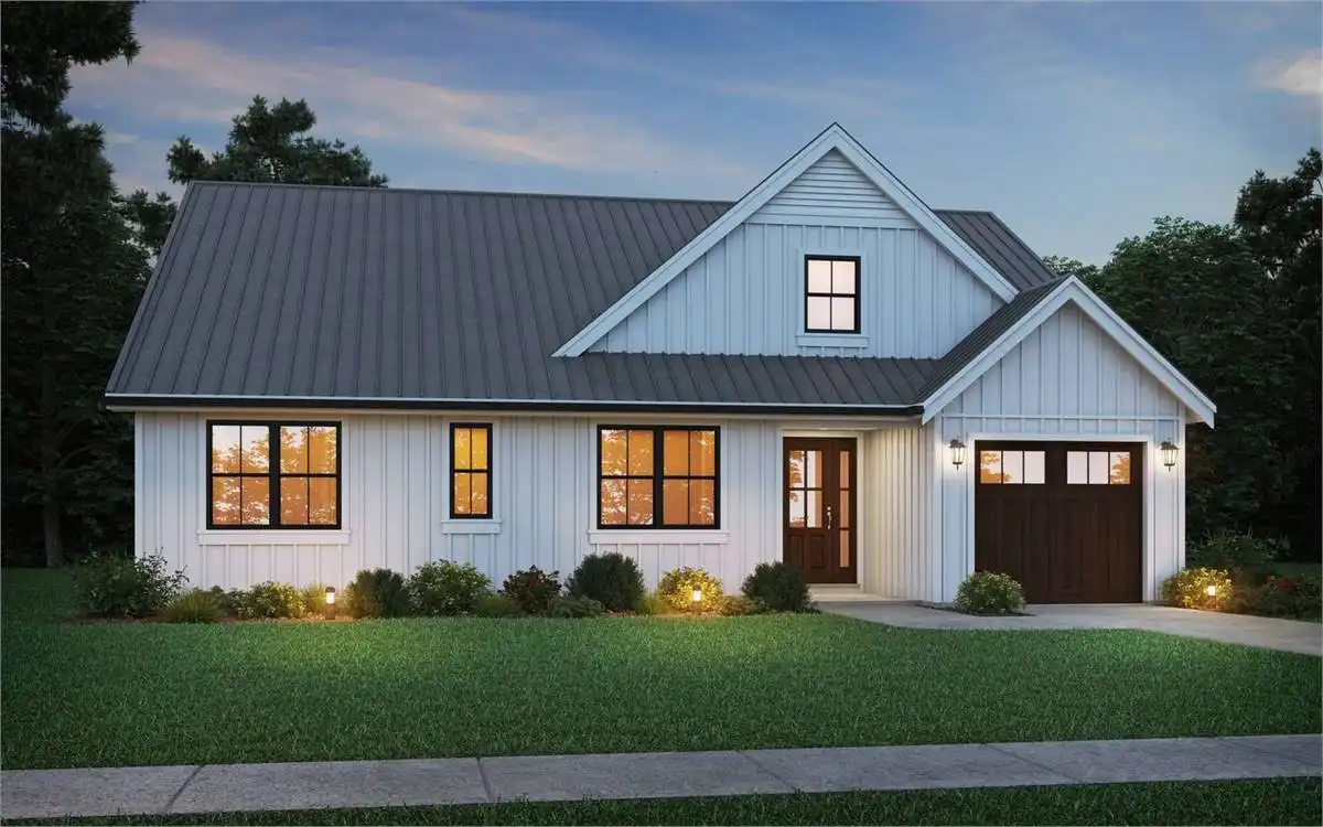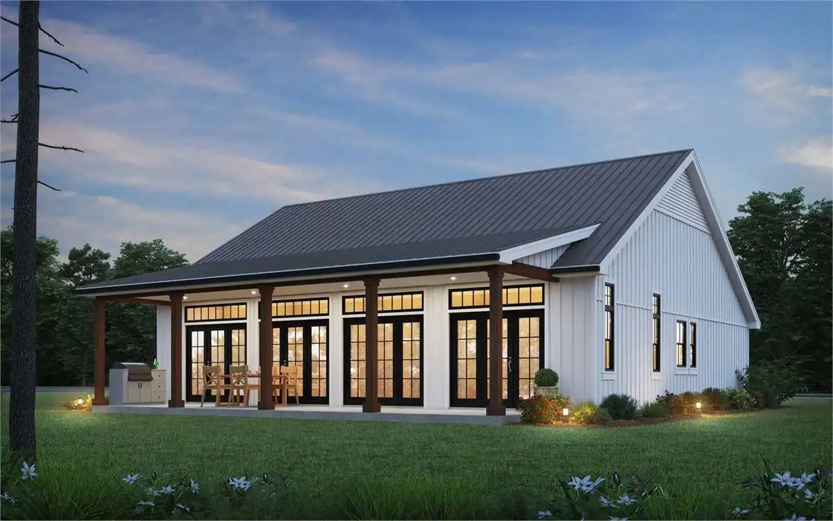 House Plan 6353 is an amazing country ranch with 1,971 square feet, three bedrooms, and three-and-a-half bathrooms. The bedrooms are all full suites and grouped in a hallway off the foyer. Two three-piece suites have front views while the four-piece primary suite has rear views. The common areas are totally open-concept and have a wall of glass to take in sights and connect to the back porch. Don't miss the pocket office! This home has a one-car garage included, but you can upgrade to a two-car garage, if you like!