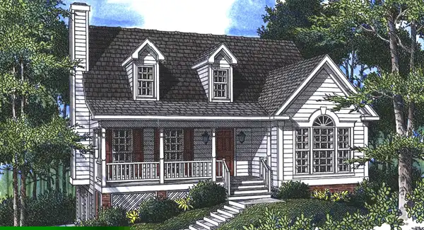 The first floor master bedroom with its modified cathedral ceiling focuses your attention on a beautiful palladium window while the master bath houses every desired feature. Dormers seen on the front of the house open to the vaulted living area, creating an additional light source for the room. As a drive under garage foundation, this house fits most side sloping lots, minimizing the impact of the garage.