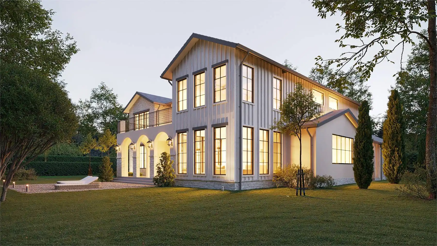 House Plan 6358 is a gorgeous European-inspired transitional home with so much for a family to appreciate across two stories. Behind its balanced facade with gables and an arched entry, you'll find 5,158 square feet with four bedrooms and four-and-a-bathrooms along with a layout ideal for hosting. The main level includes a den/library off the foyer, spacious open living that connects to the covered patio in back, a guest bedroom suite, and plenty of storage between the pantry and mudroom coming in from the garage. The primary bedroom suite is placed upstairs, on the opposite side of the floor from the other two bedroom suites for the kids. They're separated by a party room that adds common space and even more indoor-outdoor connection thanks to the balcony overlooking the back yard!