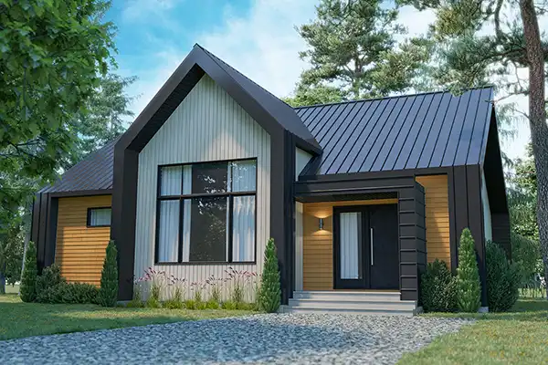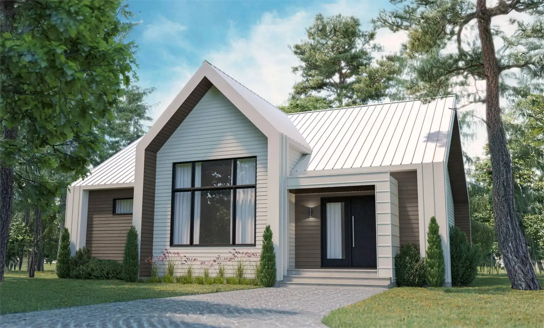 The perfect home for new homeowners and empty-nesters alike, this sleek contemporary home is 1,447 square feet of comfort. An open layout finds 2 bedrooms, one on either side of the main living spaces. Both bedrooms have their own walk-in closets, while the main areas find the living room and kitchen joined together, along with the nearby dining space and back deck.