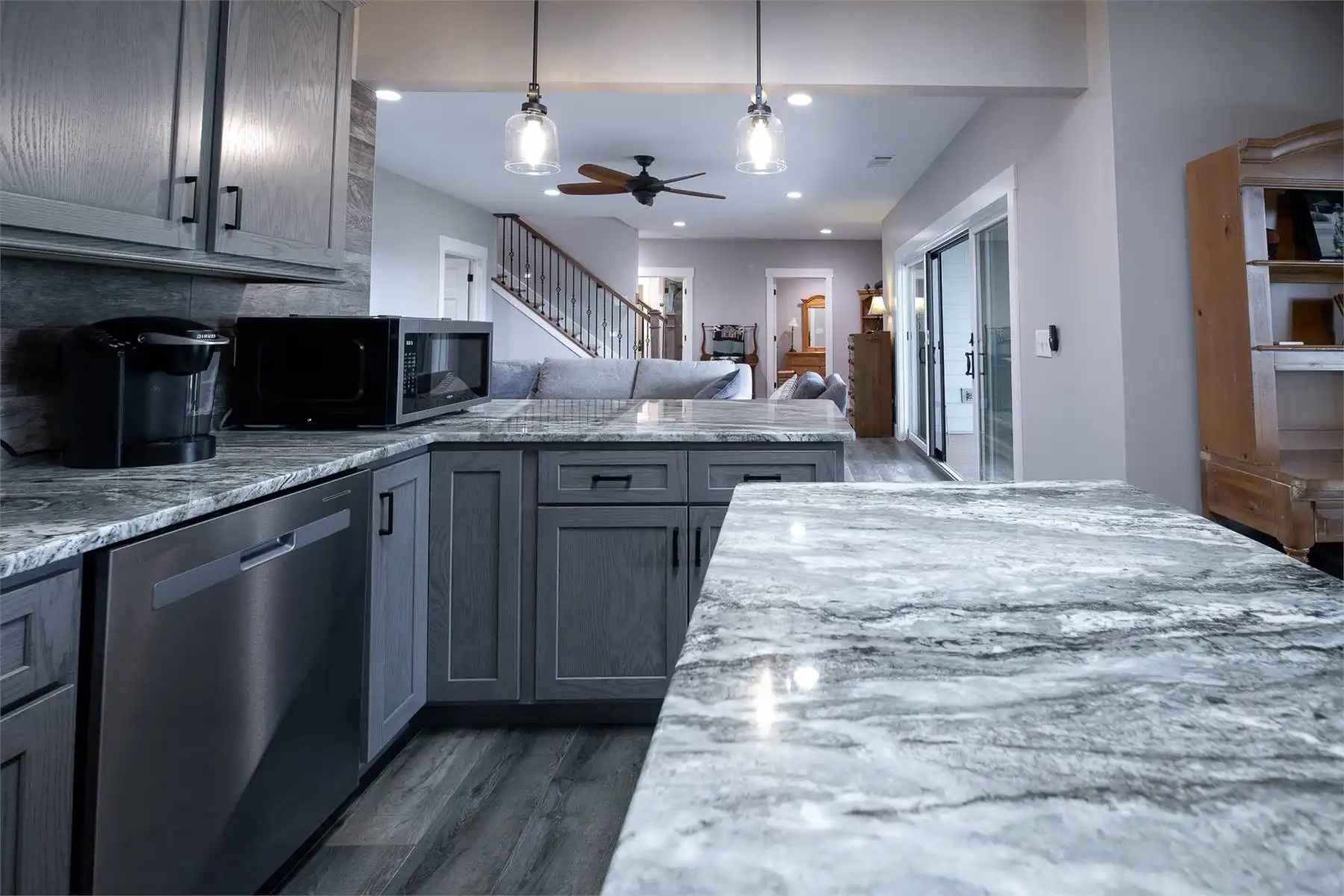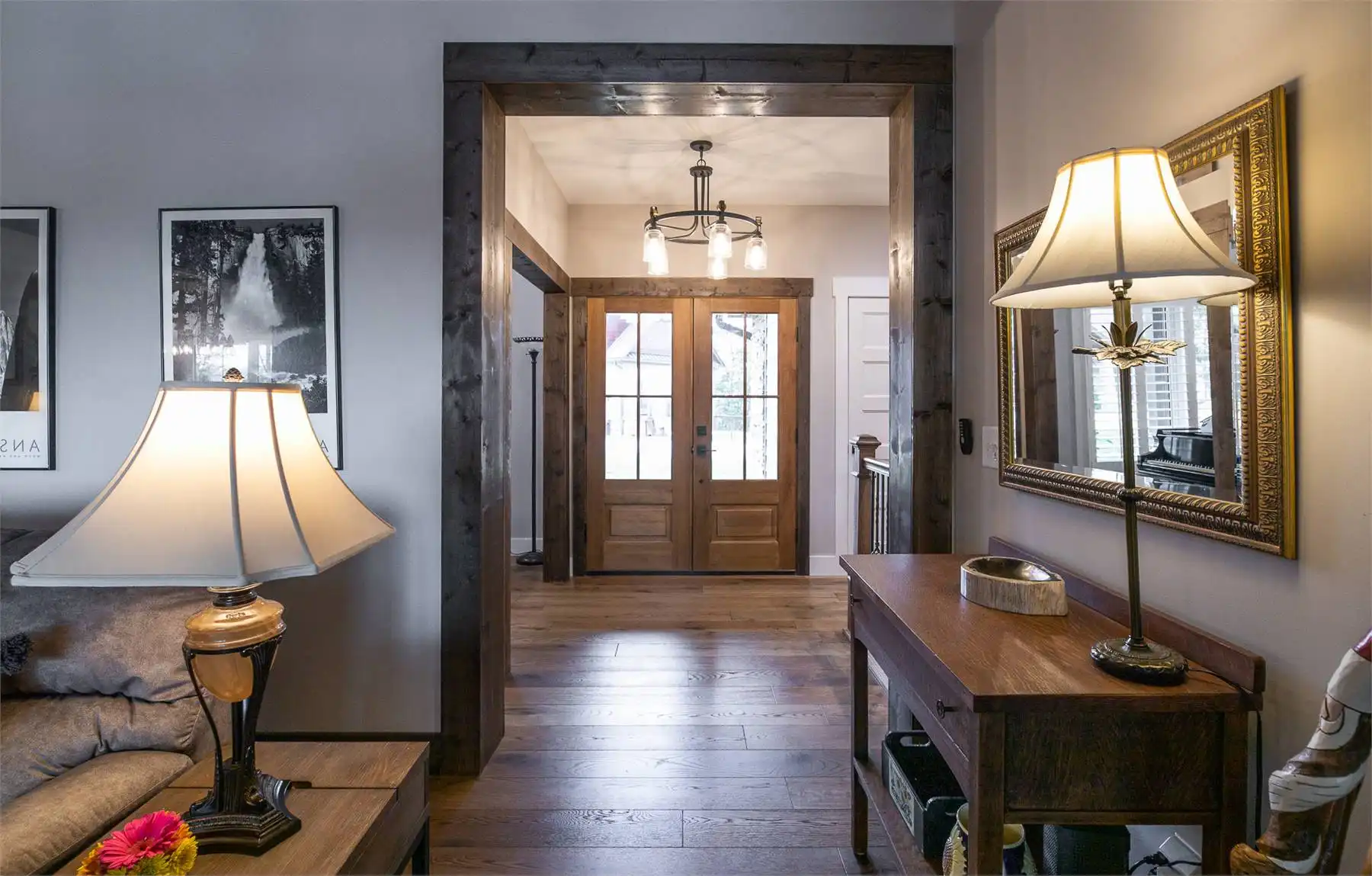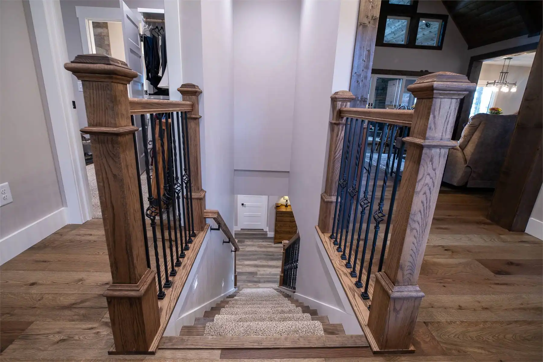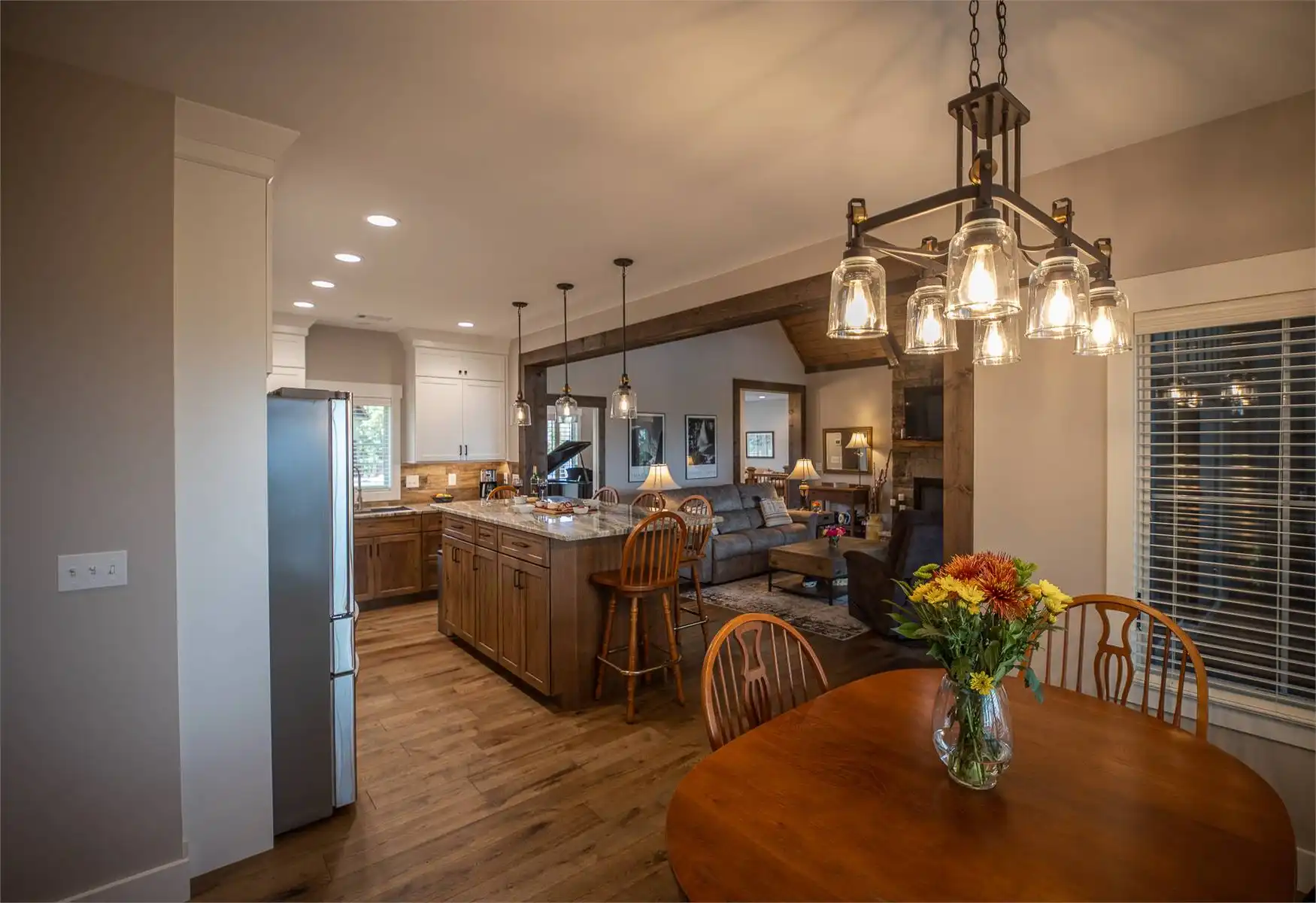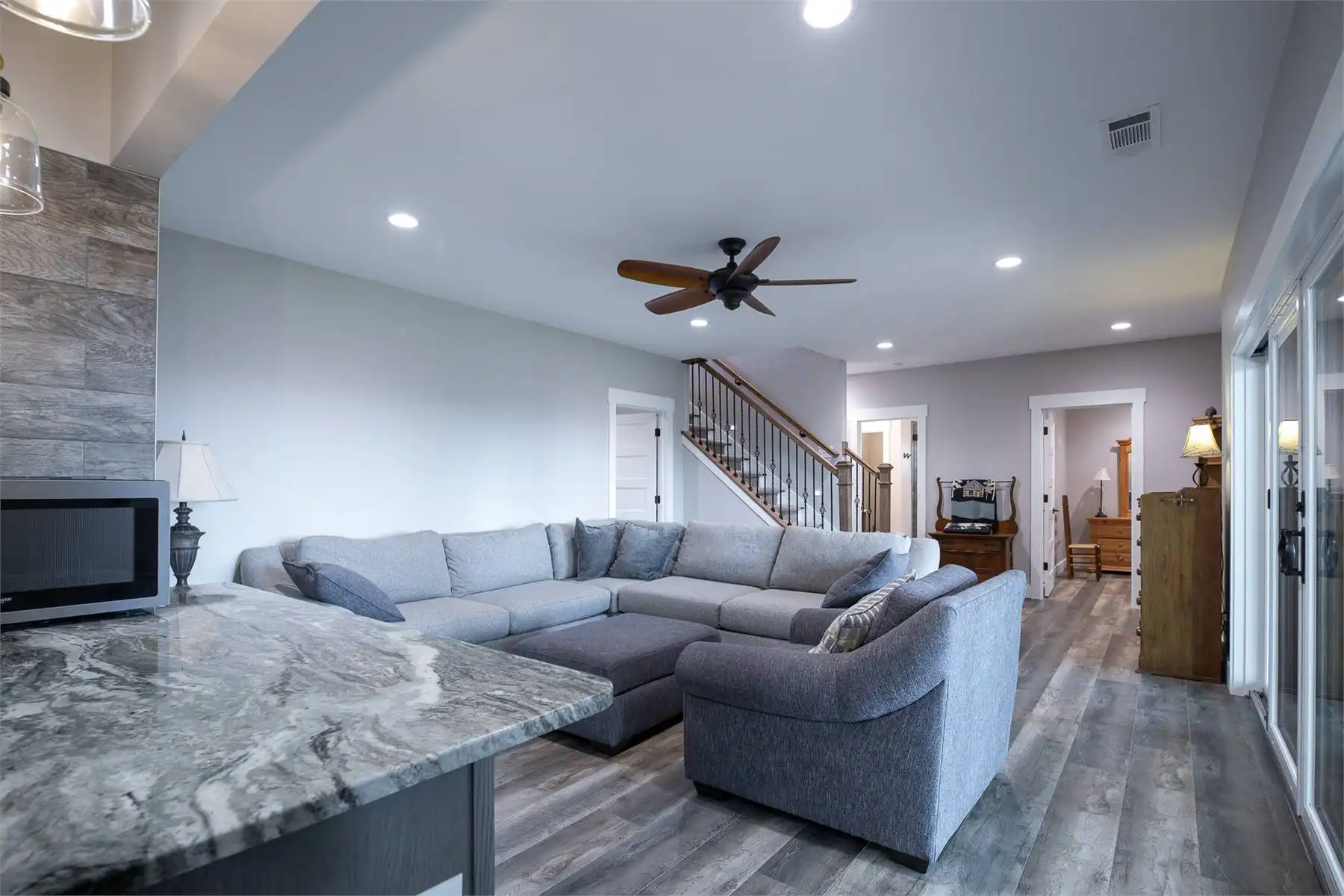 Introducing House Plan 6366, a 3,917-square-foot mountain home with Craftsman features. This unique design seamlessly integrates with its natural surroundings with beautiful wood and stone exterior elements. As you step through the spacious covered porch, a welcoming foyer leads to a large family room with captivating views and expansive outdoor living spaces. The open-concept layout enhances the home's beauty, ensuring fluid movement between the frequently used spaces. The well-designed kitchen provides ample storage and counter space. On one side of the main level, you'll find the master bedroom, ensuite bath, and a den, all of which create a true private oasis. The basement floor plan caters to family activities with a rec room, family room, theatre, two additional bedrooms, and a shared bathroom. Designed for a sloping lot, the walk-out basement features a patio for added outdoor enjoyment. Completing the tour, a bonus space above the two-car garage adds flexibility for accommodations.