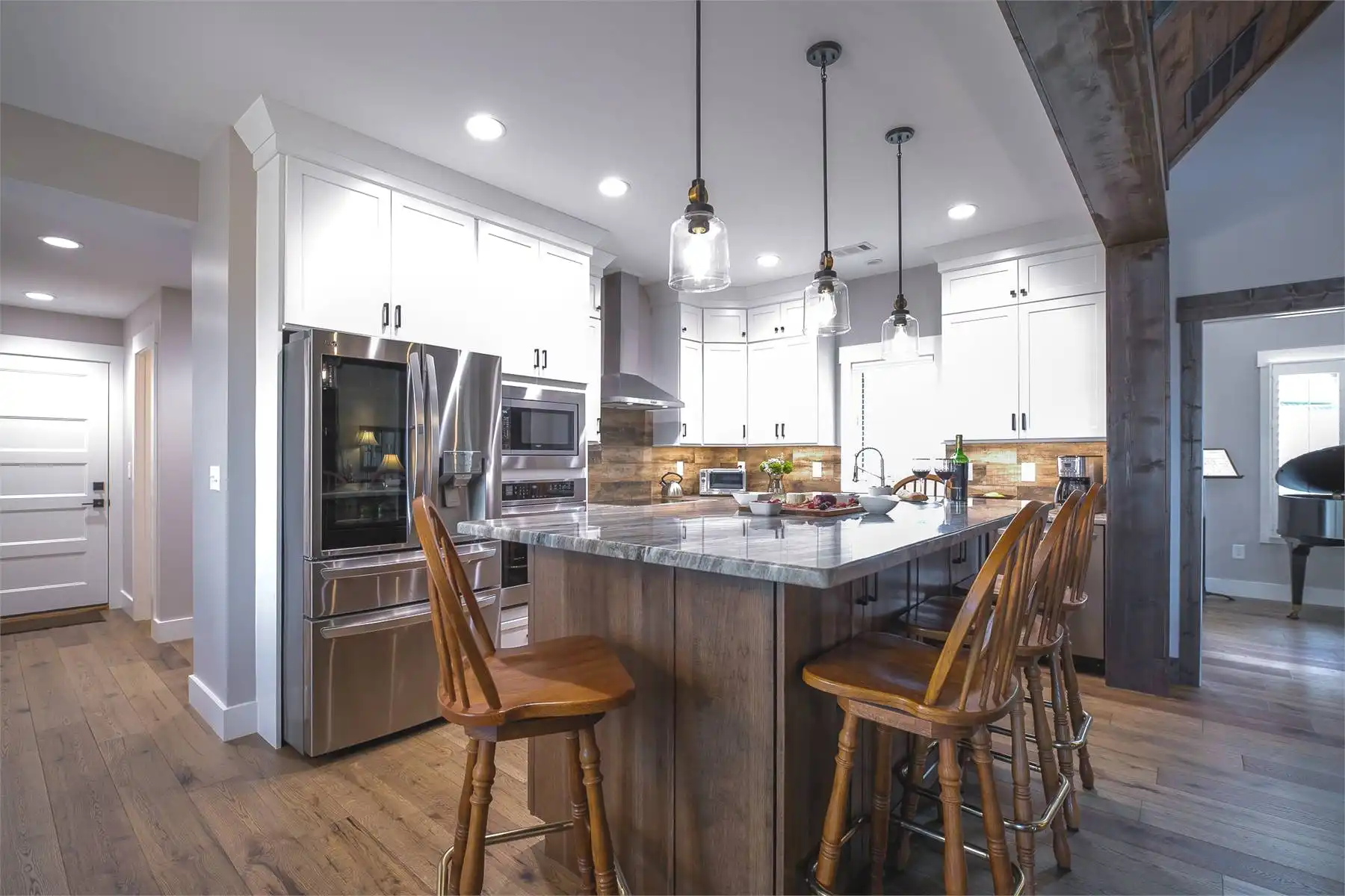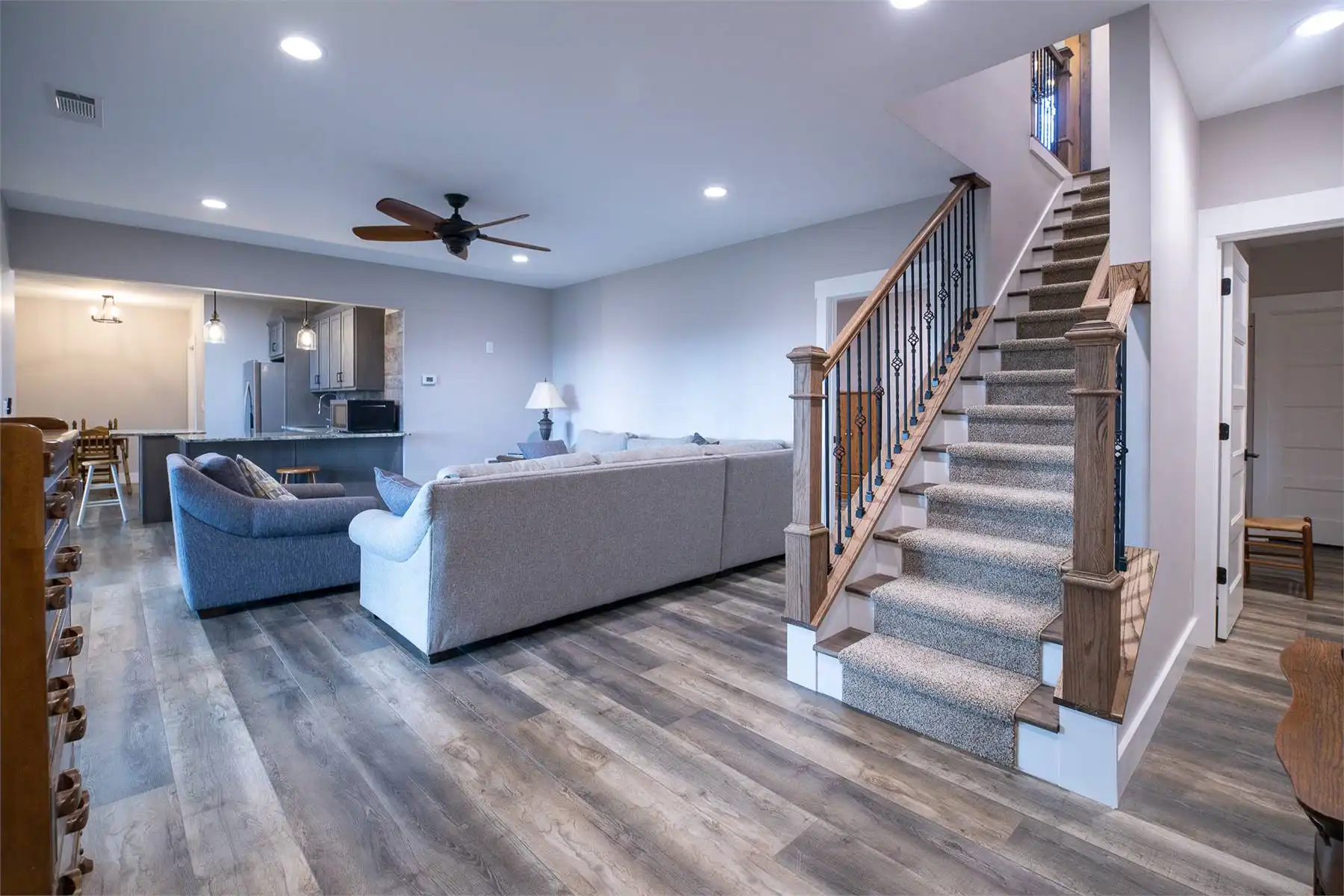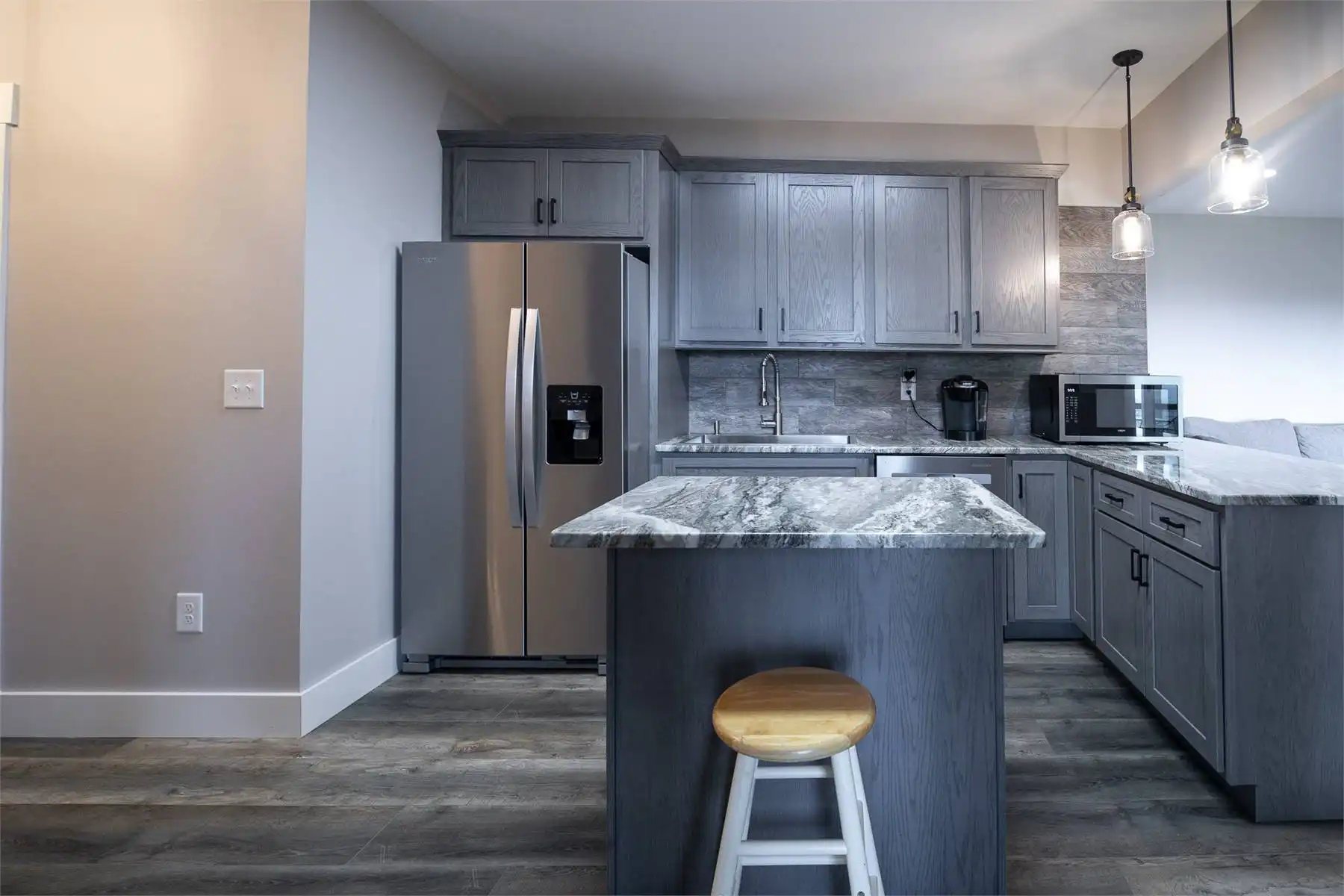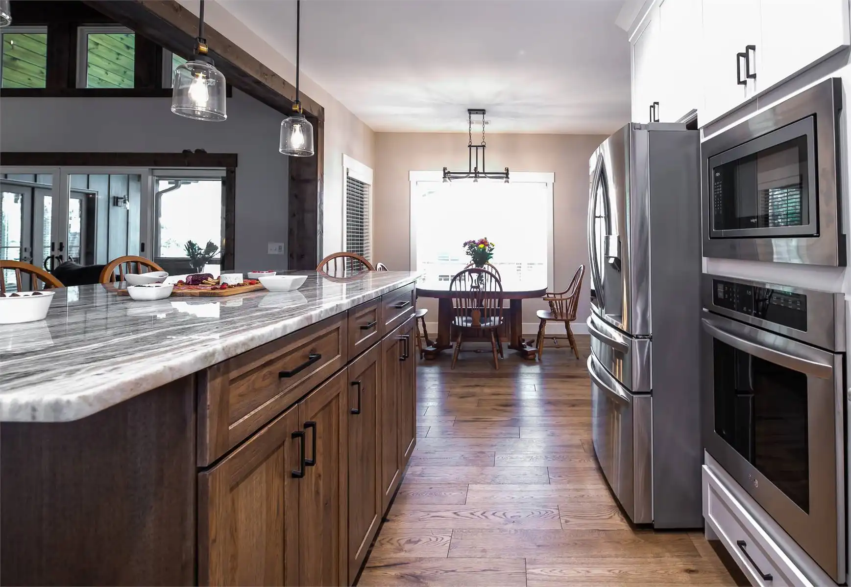 Introducing House Plan 6366, a 3,917-square-foot mountain home with Craftsman features. This unique design seamlessly integrates with its natural surroundings with beautiful wood and stone exterior elements. As you step through the spacious covered porch, a welcoming foyer leads to a large family room with captivating views and expansive outdoor living spaces. The open-concept layout enhances the home's beauty, ensuring fluid movement between the frequently used spaces. The well-designed kitchen provides ample storage and counter space. On one side of the main level, you'll find the master bedroom, ensuite bath, and a den, all of which create a true private oasis. The basement floor plan caters to family activities with a rec room, family room, theatre, two additional bedrooms, and a shared bathroom. Designed for a sloping lot, the walk-out basement features a patio for added outdoor enjoyment. Completing the tour, a bonus space above the two-car garage adds flexibility for accommodations.