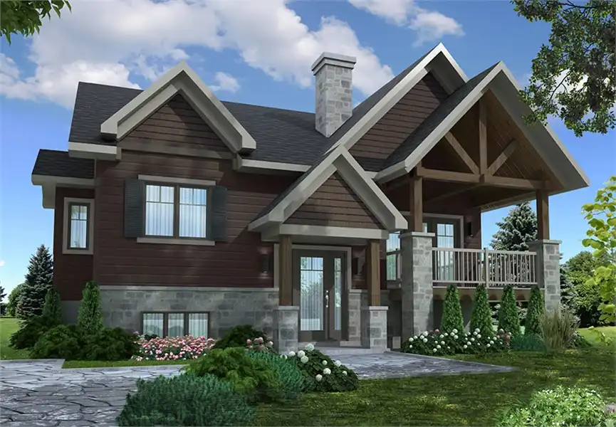 Great country rustic split level with large front covered balcony off the living room. The split entrance offers a wardrobe and is slightly set back from the living room, keeping the cold / hot away from the common areas, convenient during our winters / hot summers! The lounge area (living room) and the dining room are in open concept and share the heat of a wood stove fireplace located near the access to the front covered balcony. The dining room offers a convenient patio door leading to the backyard. Moreover, the dining room is also open to the kitchen allowing a good circulation and communication between the occupants and the cook! The kitchen has a walk-in pantry as well as a good size island which can comfortably accommodate 3 guests. The master bedroom and one secondary bedroom are located immediately next to the full family bathroom, on the main floor, but away from the family area. The family bathroom suggests a very convenient layout with large shower and separate bath tub, toilet, dual vanities and a linen closet. Future bedrooms and a shower room are provided in the basement, but can have different vocations such as a home office, a family room or simply a guest bedroom. You decide! We thought of an efficient basement layout for the future. The suggestion is included in the plan that you will receive but is not taken into account in the construction costs proposed on our site. You have the choice to decide to finish your basement or not. Please note that many foundation options are available for our plans, contact us for more details.