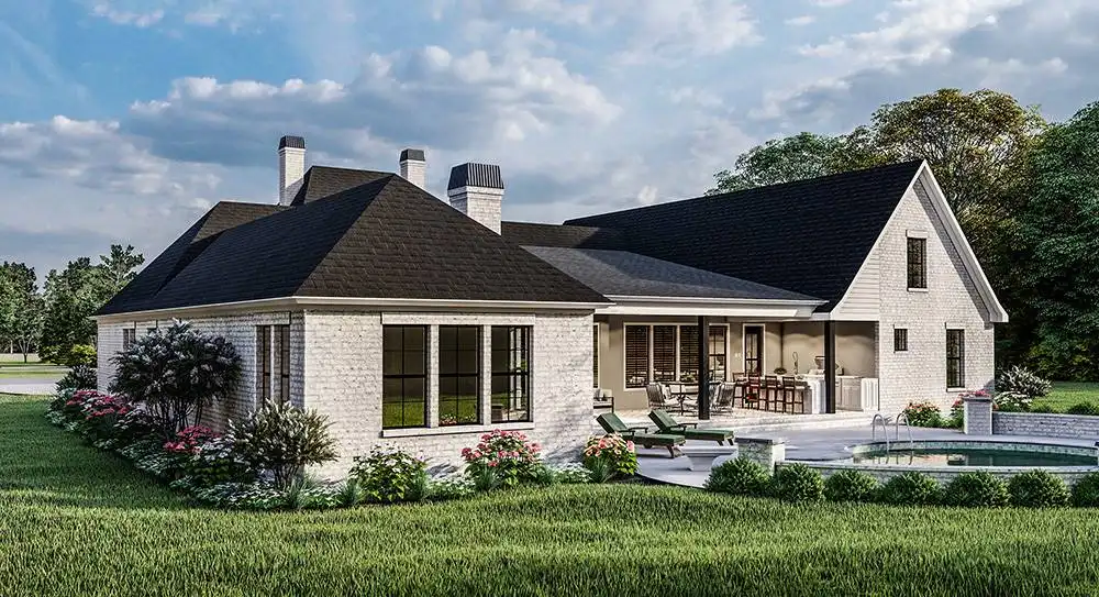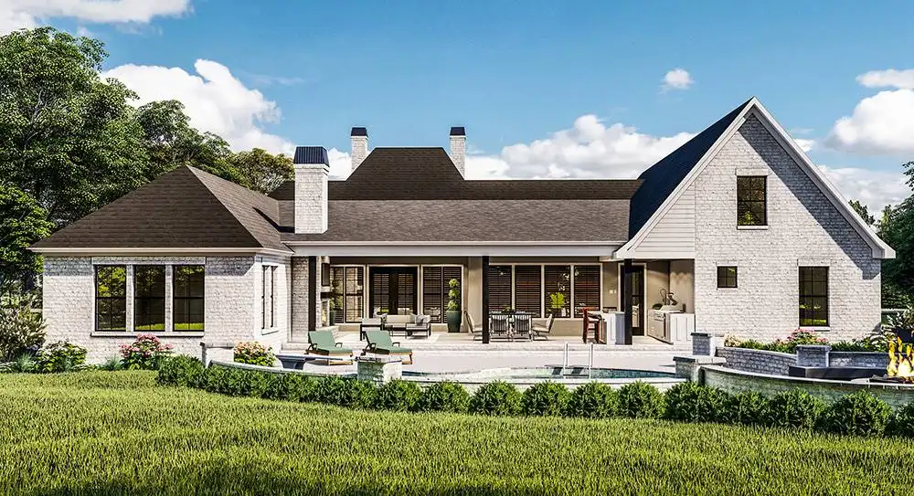 Gorgeously accessible and totally stylish, this beautiful French home is great for a new or growing family. 3,507 square feet of living space provides 3 large bedrooms, with the potential to add one or two more in the future bonus room areas above the attached garage. The main spaces of this home include its vaulted family room and open island kitchen and dining space. Guests will enjoy your barbecues thanks to the covered back deck and its full outdoor kitchen. Meanwhile, all of the bedrooms are equally comfortable, especially the master and its full spa-style en-suite.