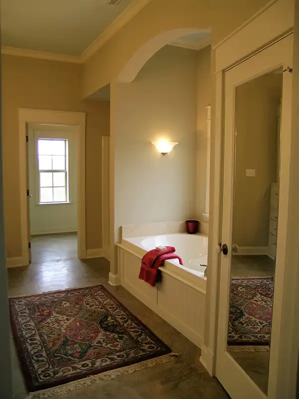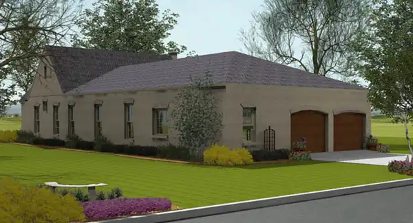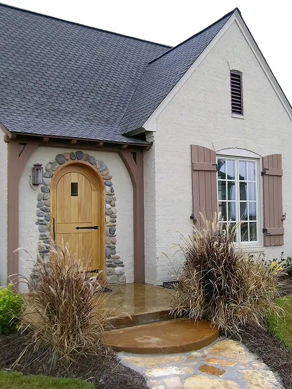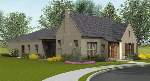 Beautiful stone frames the arched entry into this charming cottage. Tall 12' ceilings in the great room are accompanied by stylish exposed beams. The kitchen/breakfast area is large and offers abundant storage space. A well placed laundry room is convenient to all bedrooms. The porch and patio is spacious and located close to all living areas.