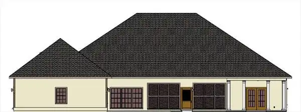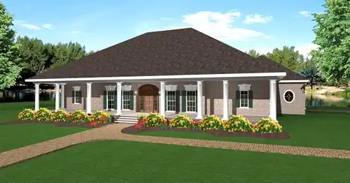 Dual Master Bedrooms with FULL spa baths and walk-in closets, make this plan unique. The second Master could be used for the Grandparents, Guests or that boomerang child. Each bedroom ceiling is recessed to 10' for an elegant open feeling. The Master Bedroom has a wide covered porch accessed by double French doors.