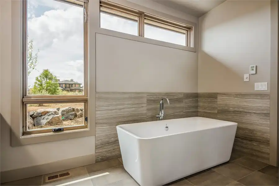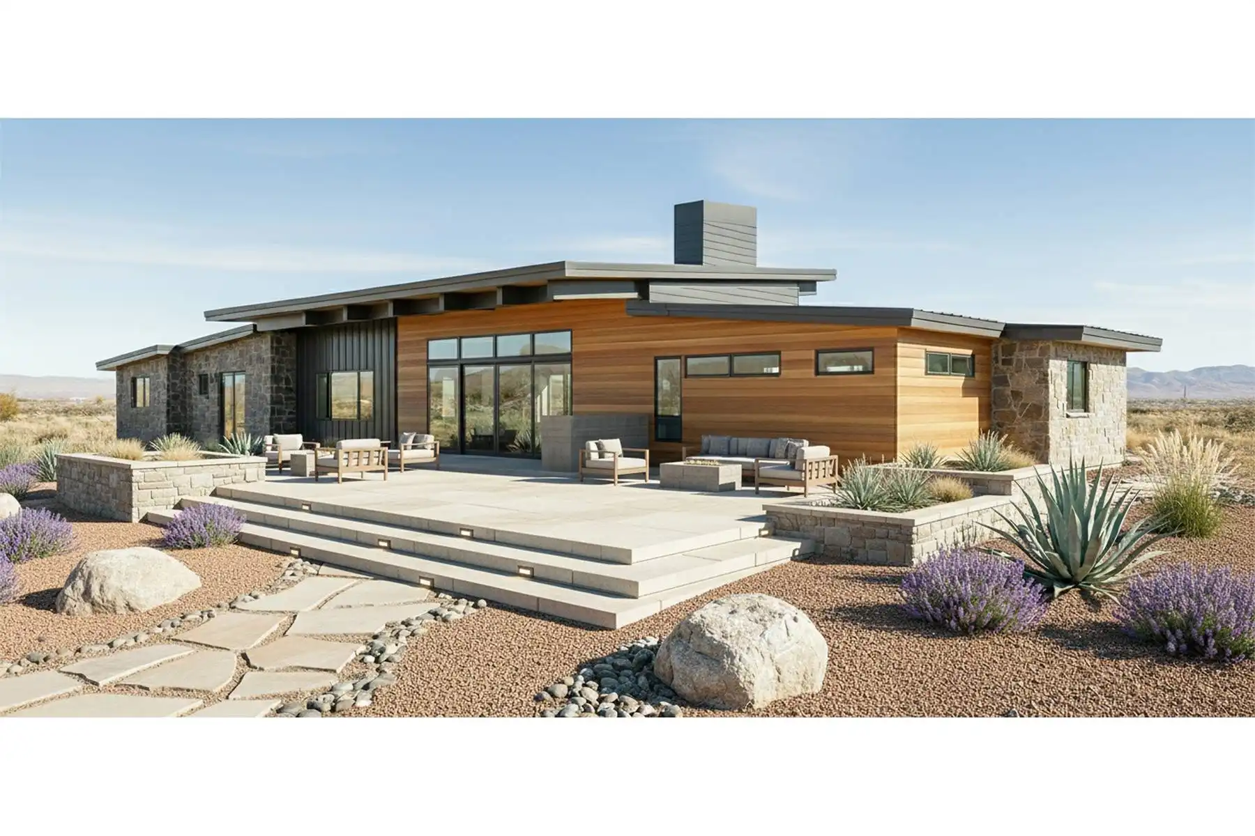 With a horizontal appearance, this luxury modern house plan contains three bedrooms, 3.5 baths and 3,338 square feet of living space. Contemplate life as you unwind in the great room of this home plan, where a fireplace adds ambience. Step outside for a breath of fresh air, and notice the handy grill. Back inside, the dining area is just right for formal or casual meals. The wide-open kitchen provides island snack space for four. Double doors introduce the deluxe master bedroom, which in turn accesses an outdoor spa. The personal bath refreshes you, with its garden tub, separate shower and double vanity. The walk-in closet keeps your clothes organized. Two secondary bedrooms in this home design have their own private baths. Our customers love the useful study and the fun game room.