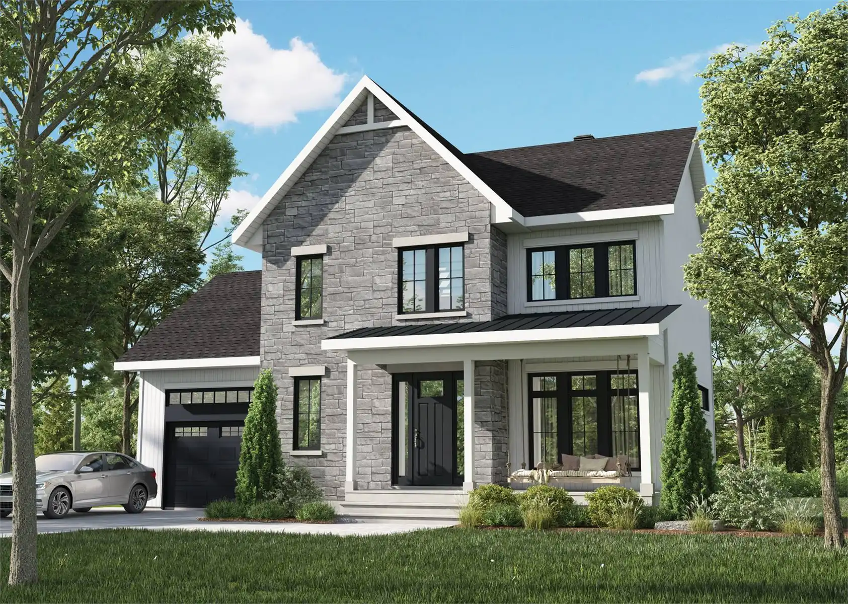 Step into the charm of House Plan 6487, a delightful two-story modern country-style home covering 1,708 square feet. With three bedrooms and one and a half baths, this family home effortlessly balances style with practical comfort. As you approach, the exterior showcases a pleasing blend of stone and wood, enhanced by a covered porch inviting you to explore. Inside, the open floor plan unfolds from the porch, revealing a spacious living room, a well-appointed dining room, and a kitchen designed for both functionality and style. The kitchen features an island, an L-shaped counter, and a generously sized pantry—making it the heart of the home for gatherings and culinary pursuits. Venture upstairs to discover three bedrooms sharing a thoughtfully designed bathroom equipped with two vanities for added convenience. Centrally located on this floor, a practical laundry room streamlines daily routines with easy access. Complete with a one-car garage for your family vehicle and storage needs, House Plan 6487 is more than just a home; it's a representation of modern living, seamlessly blending comfort and elegance in its stylish exterior and functional spaces.