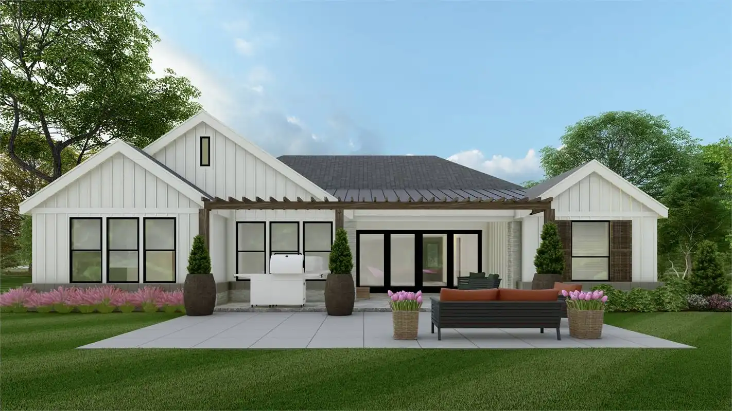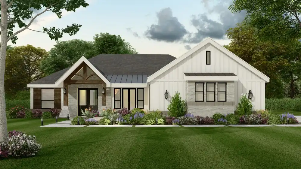 This 1 story 3 bed, 3.5 bath design is ideal for empty nesters or young families that are excited to build their first starter home. This transitional plan blends the beloved Modern Farm with the adornments found in the craftsman genre.
