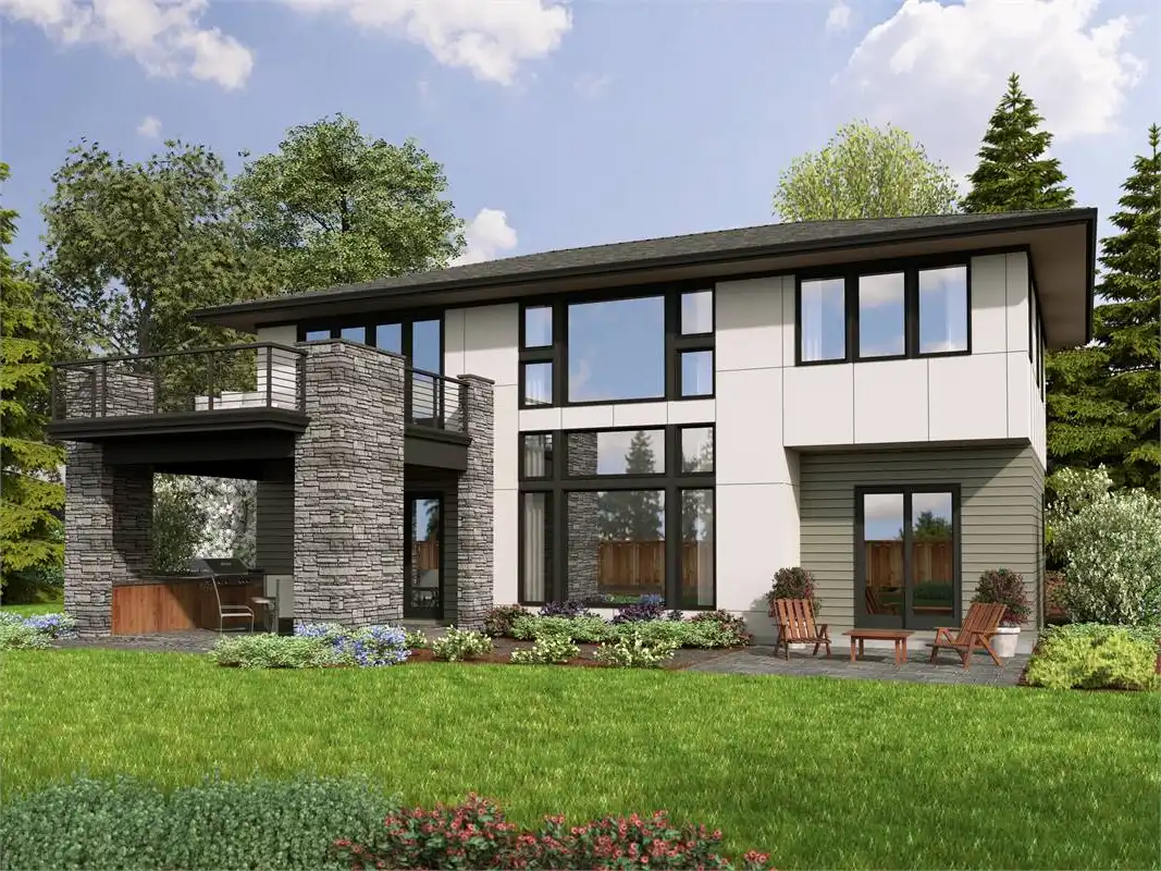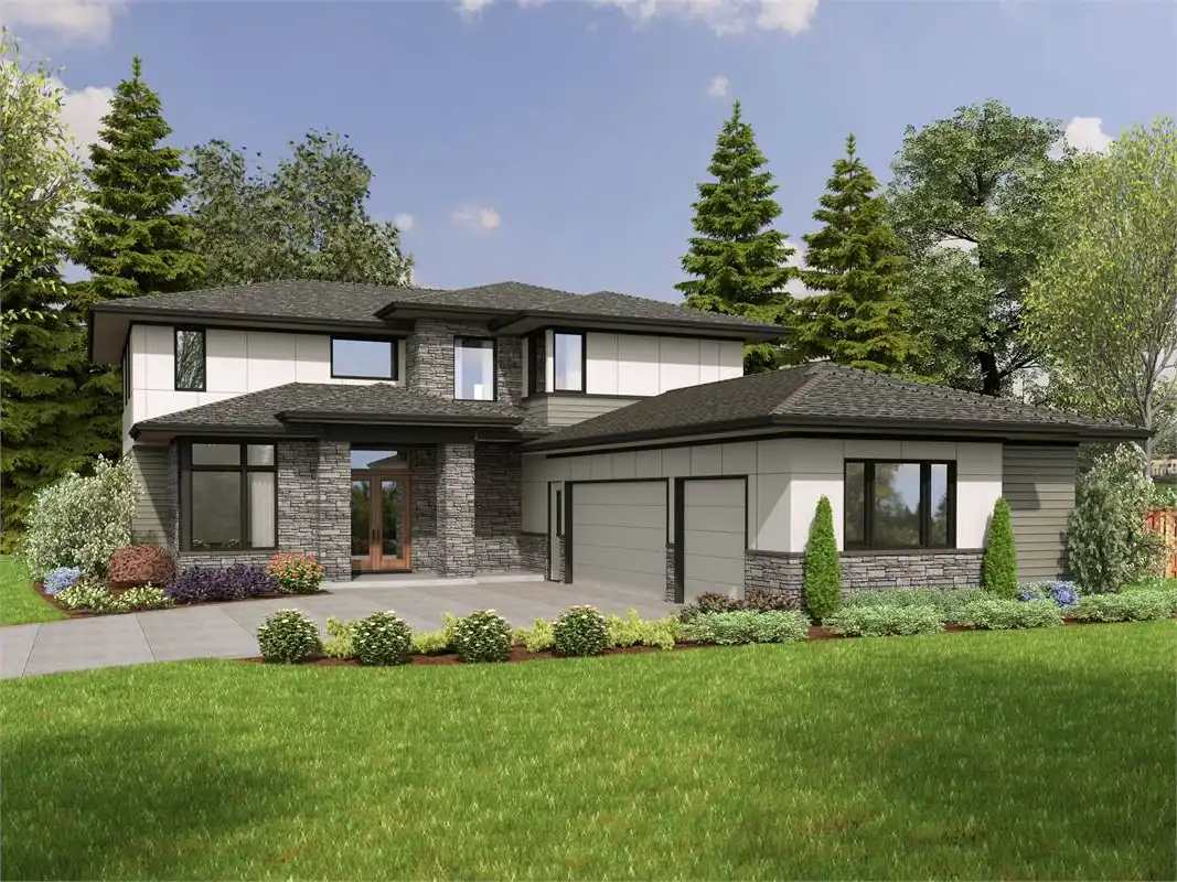 This 2 story Modern Prairie 4 bedroom, 3.5 bath home design is ideal for families with generational living arrangements or those who have overnight guests often.