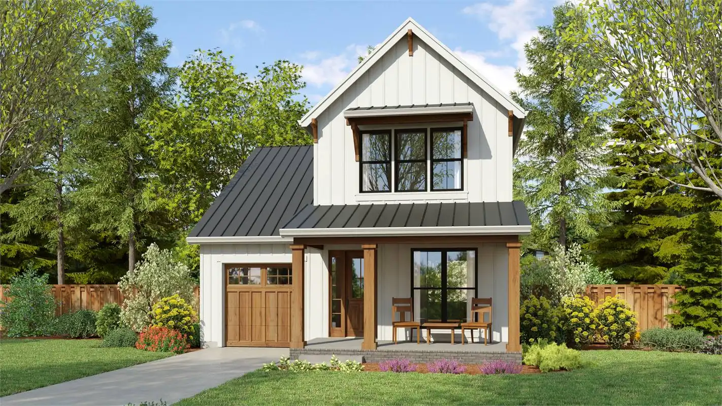 If “narrow lot” has been in your keyword search, this 30’ x 64’ two story Modern Farmhouse might be the one you have been looking for.