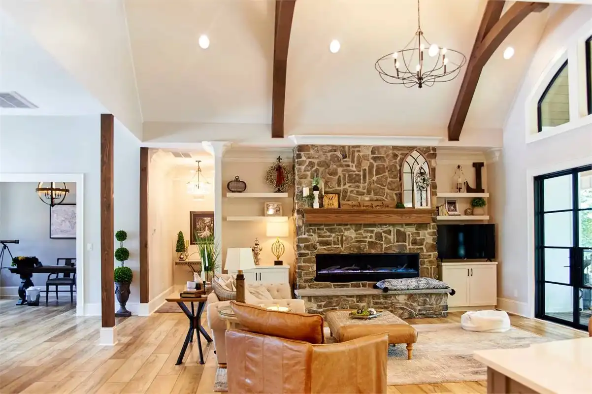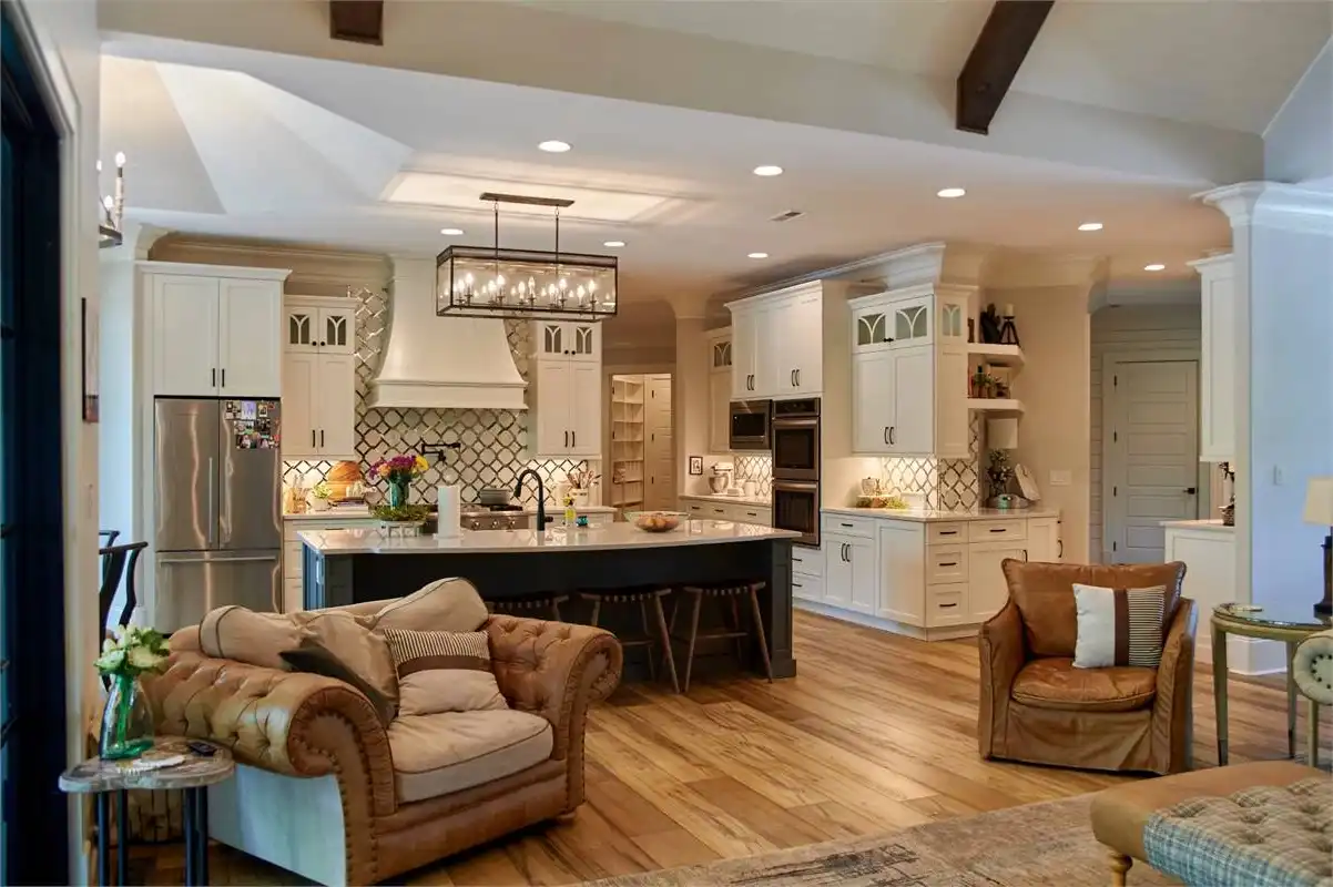 This 3,813 sq.ft. 1 story Transitional is a perfect blending of the Modern Farmhouse we all love with the personal decorative touches from the Craftsman genre. From the board and batten to the wood accents on the front porch, you’ll love the unique flair of this design.