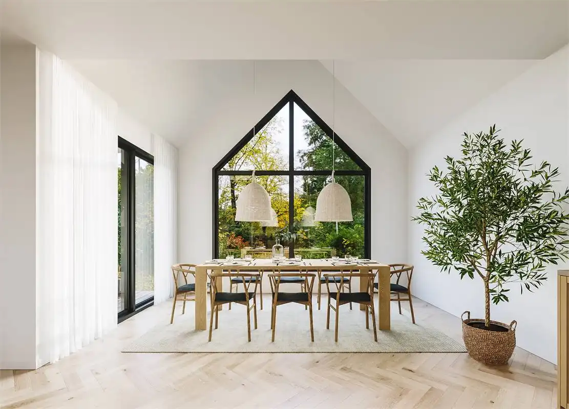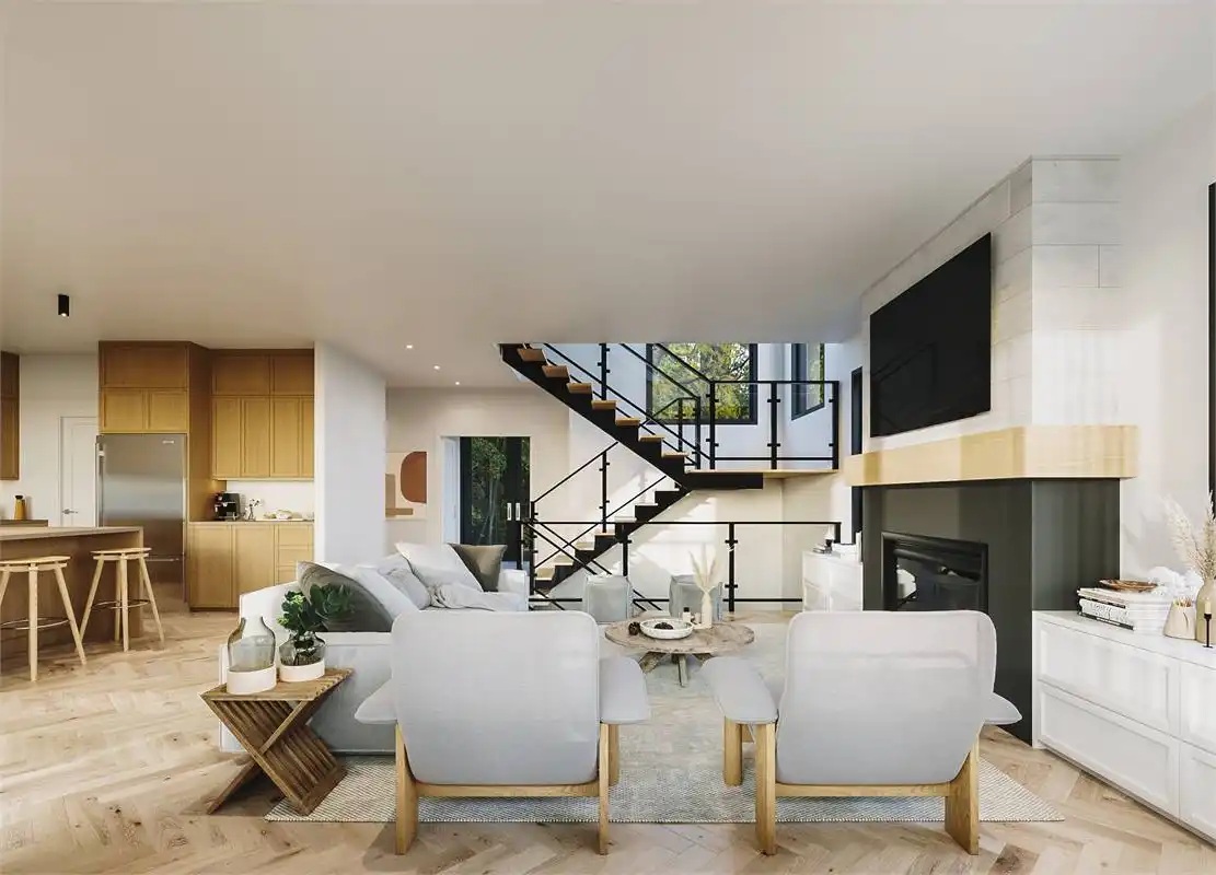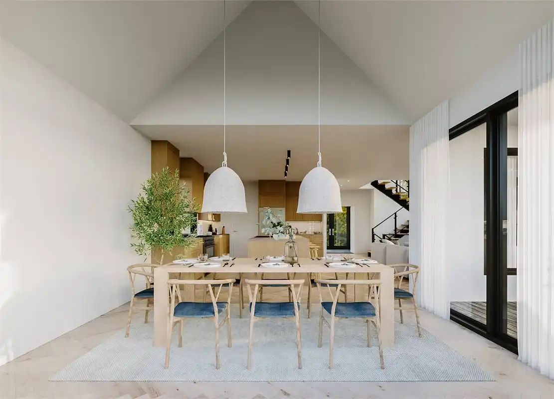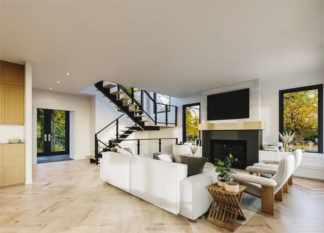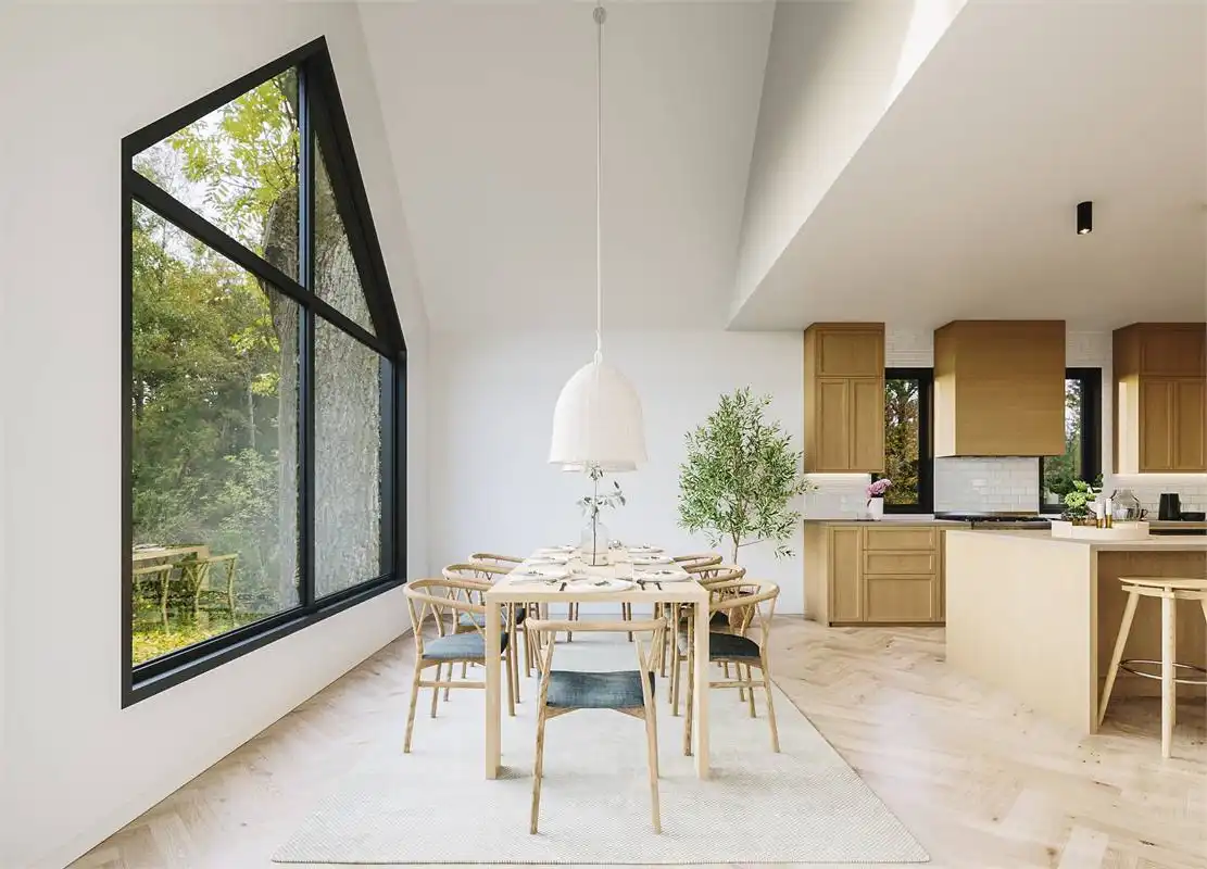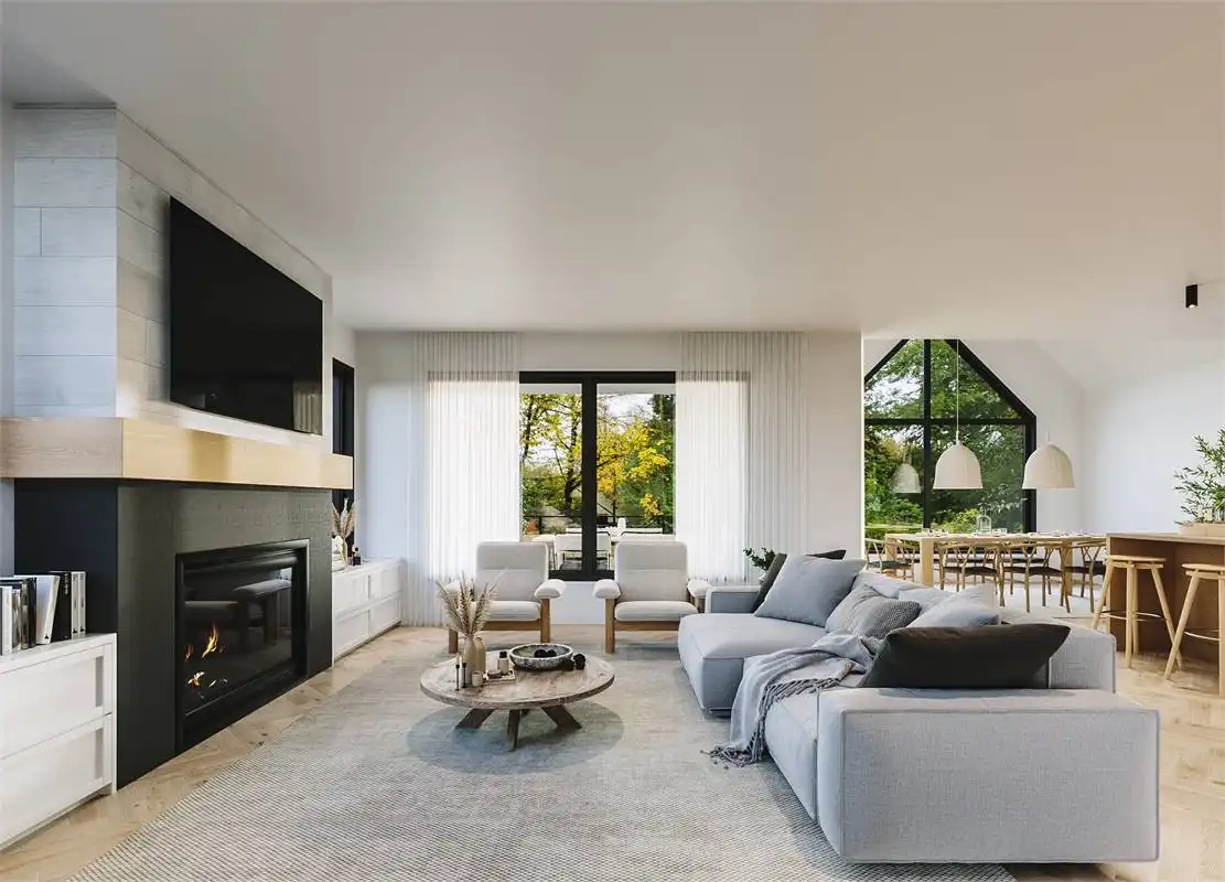 Entering the home, your guests will be able to stow their coats and keep the cold air out with the pocket doors in the vestibule / foyer. Grandness is brought upon entering the open floor plan with the 15’ cathedral ceiling in the dining room that opens onto the terrace through sliding doors. The fireplace is flanked with more windows for natural light.