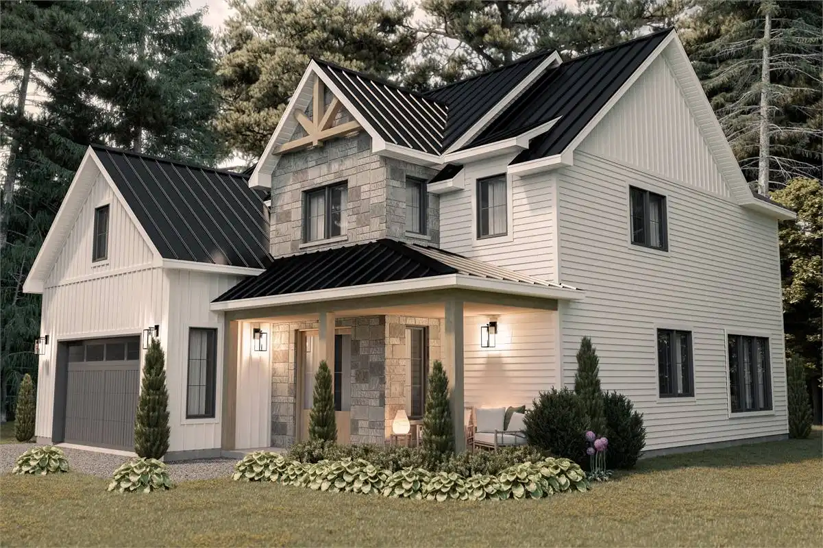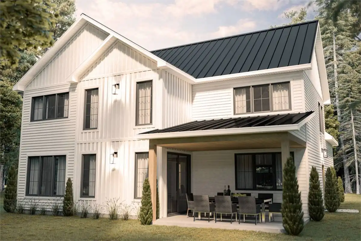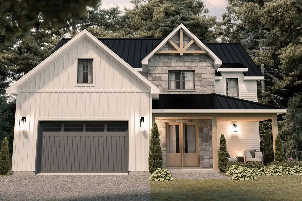 This 2 story 2,178 sq.ft. Modern Farmhouse is a classic layout for families with younger children with all of its bedrooms being on the upper level. The 3 bedroom 2.5 bath design is all about family togetherness and fellowship on its main level. The 18’6” ceiling brings an airiness to the second story level. The cook of the home will love the window over the sink as well as the walk-in pantry. The bbq enthusiast of the family will revel in the outdoor covered terrace.