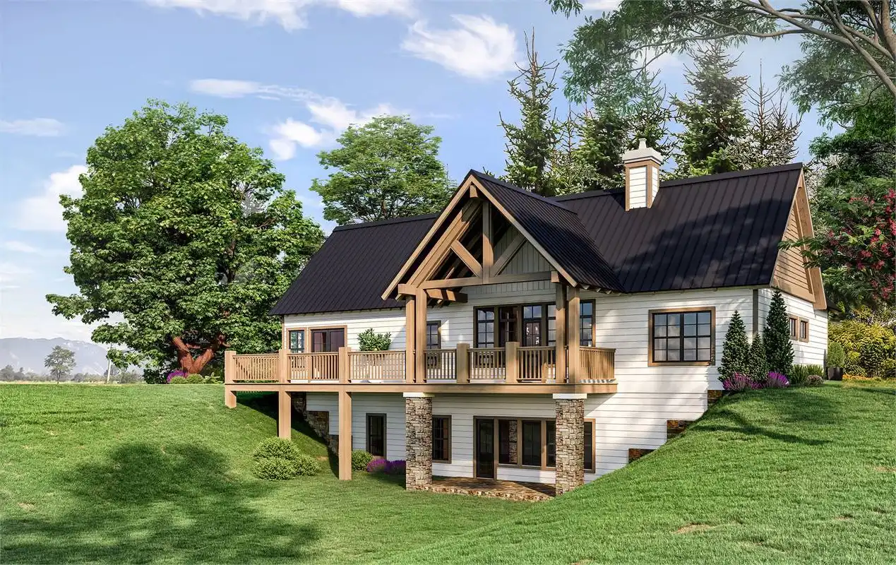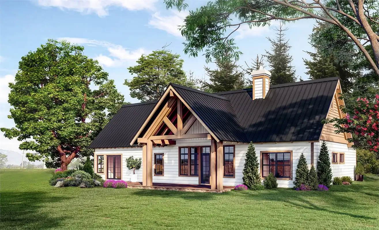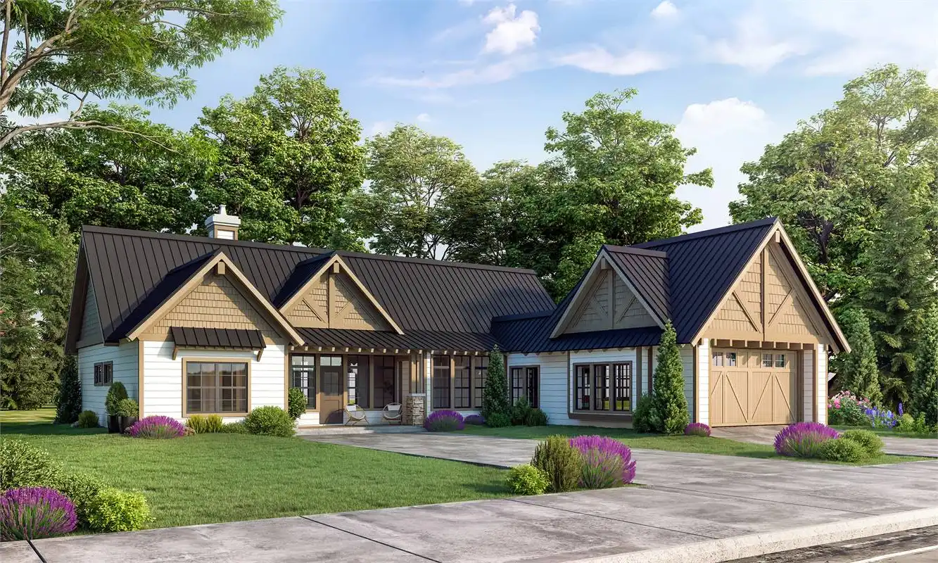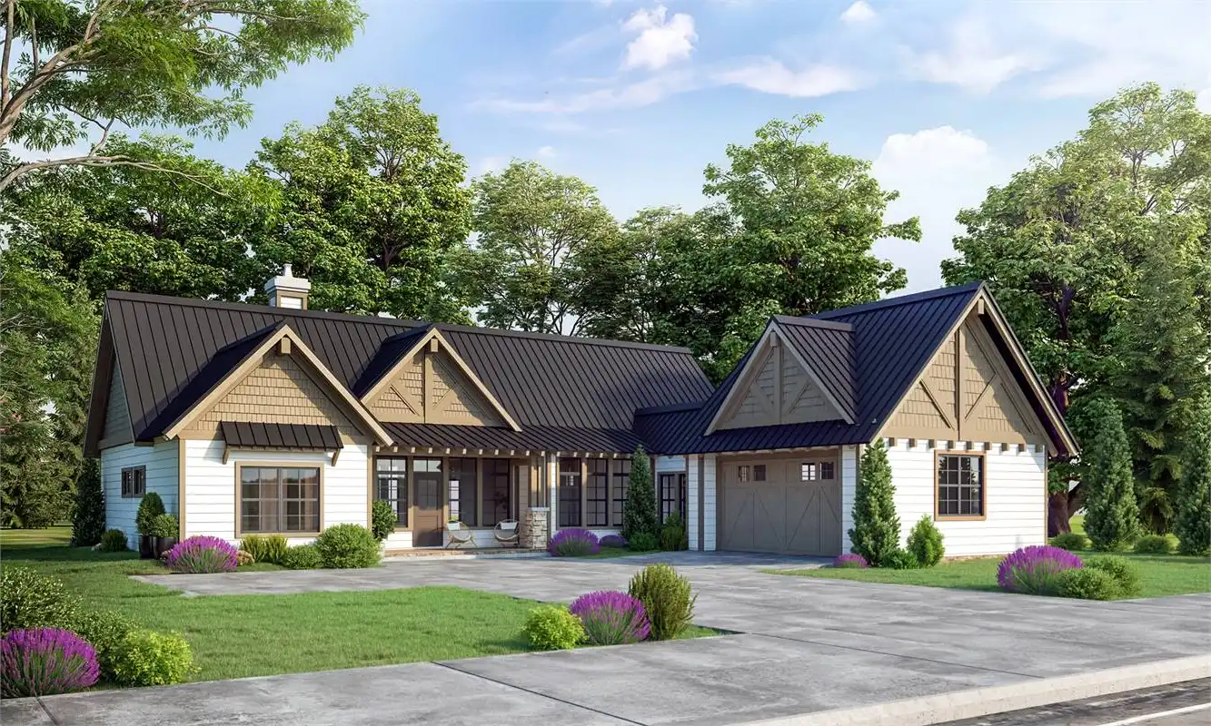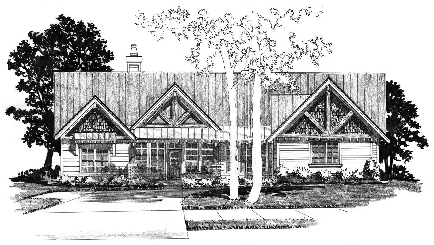 If you are ready to downsize and enjoy more simplicity in a 1 story home, or you are a young family ready to grow into your tomorrows, this 1,892 sq.ft. open concept plan allows for expansive space for the family to be together and lends itself to “outside in” living with both a covered vaulted wood beam porch and an uncovered deck. The split bedroom style is popular in how it separates the two secondary bedrooms from the master. Both bedrooms two and three each have their own bathroom, one with a tub and the other, a shower. The stately master bedroom has a 15’ vaulted ceiling and two separated wall closets. There are french doors to the back patio. The family laundry room is conveniently located just inside of the 2 car garage / mudroom / powder room hub of the family entrance.
