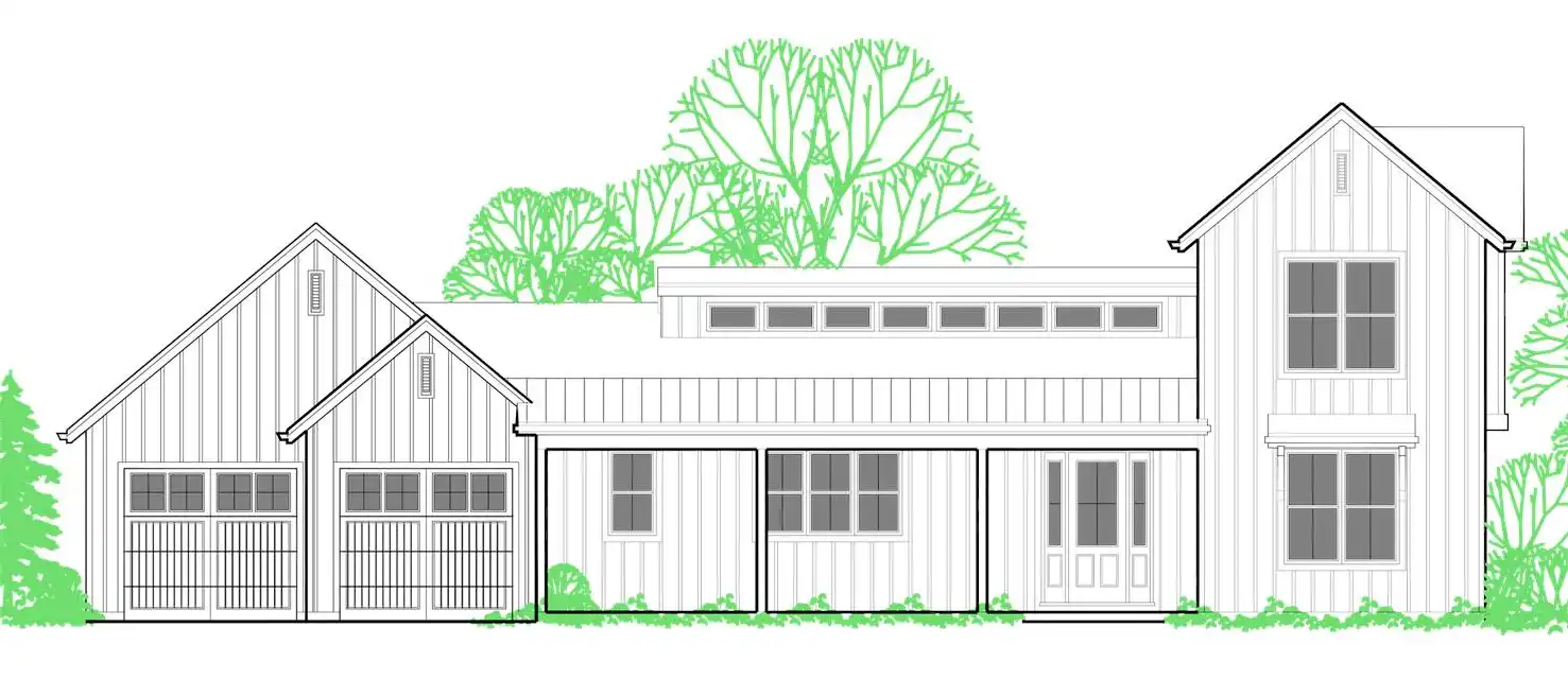 The expansive main room has a huge vaulted sloped ceiling that is lined with clerestory windows, bathing the entire space in natural light along with 3 sliding glass doors that open onto the vaulted covered back porch, complete with a bbq space if you choose to add that in during your build.