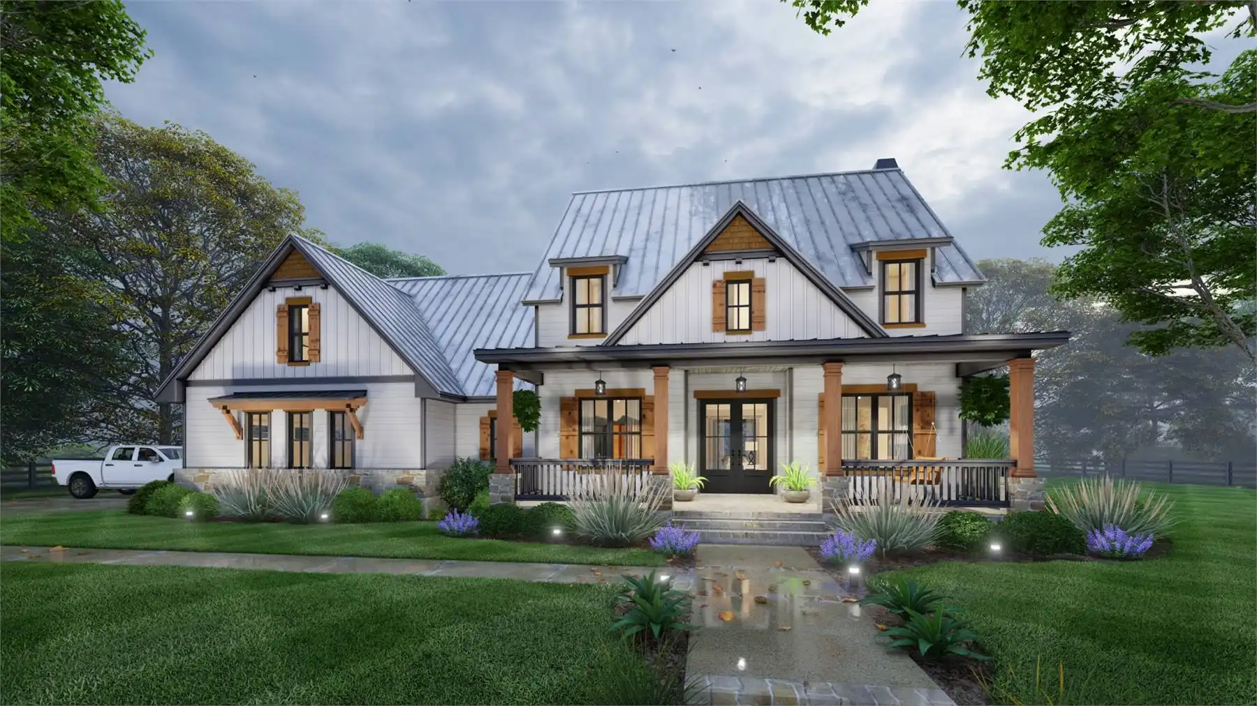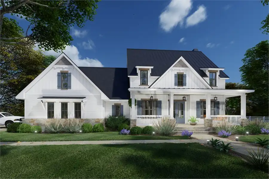 Introducing our new Modern Farmhouse boasting 2,526 square feet of modern, upscale living. This gorgeous home has amazing curb appeal. The front exterior just begs you to come and sit on the veranda and have a glass of iced-tea. This beautiful plan spans two floors giving space and privacy to all members of the family. An entertaining mecca, this plan has a huge family room that is joined with a formal dining room and gourmet kitchen. The rear lanai boasts an outdoor living area complete with grill and is a comfortable place to relax at the end of the day. The master suite is truly a spa retreat with its large soaking tub and walk in shower. His and hers walk in closets and dual sink vanity provides plenty of space and comfort. The second floor is a haven for the kids, with two bedrooms, bonus room and game room and ample bathrooms. This home is just right for your growing family.